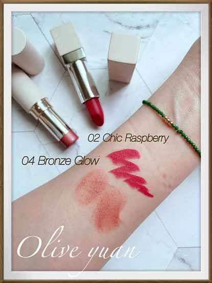 「RMK經典輕潤口紅/絨霧(4g NT1,350)」全3色,我入手的是02 Chic Raspberry,是一款帶有大人系氣息,並飄盪著Bitter&Sweet氛圍的覆盆子色,我覺得也有點像櫻桃色,“絨霧”為霧光質地,並帶有乳霜般的光滑度與粉狀的輕盈感,成分還添加完美比例的美容油,雖然是“絨霧”但不乾燥,用起來很柔滑服貼,以霧感質地來說非常好塗,而且用在唇上無色差。