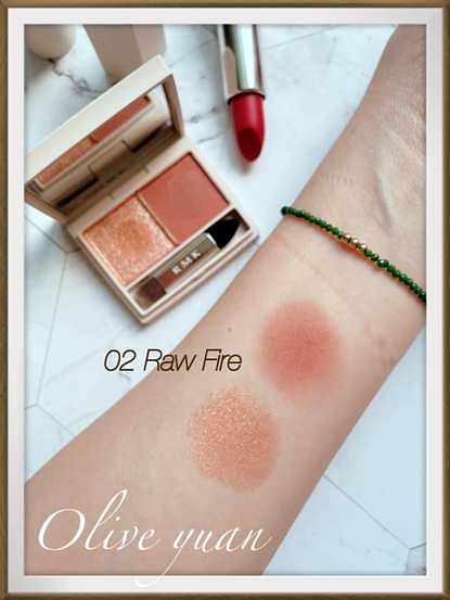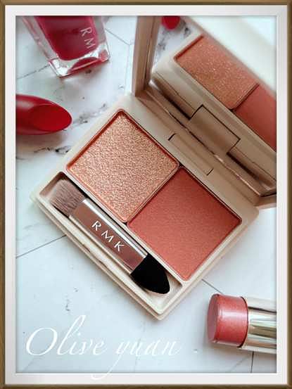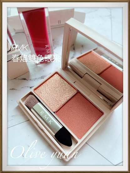 「RMK春焰雙色眼采(3.5g NT1,400)」全2款我超推,因為我眼影只用2色,這個剛剛好又方便攜帶,我入手的是比較偏暖的02 Raw Fire,右側的暖棕色調帶柔和的紅感,左側的SH亮燦古銅色澤珠光也非常華麗,眼影成分為濕式處方,所以除了很服貼,透過色彩層疊還能增加深邃度,用指腹也能很快完妝,這款我真的很愛。