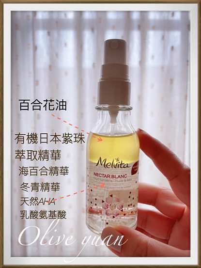 最近好多保養品升級喔!而且說到煥膚、老廢角質代謝,怎麼樣你都不會聯想到「油」,但Melvita蜜葳特這款「百合花妍亮白雙效露(50ml NT1,580)」,就是一款居家前導煥膚油!噴一噴,瞬效KO黯、粗、乾!而且我對它的味道再熟悉不過,因為凱鈞老師錄影都要噴這個來定妝。