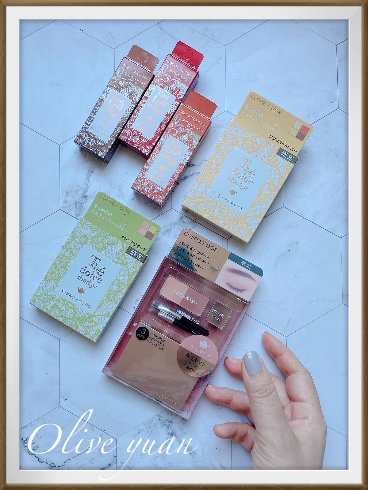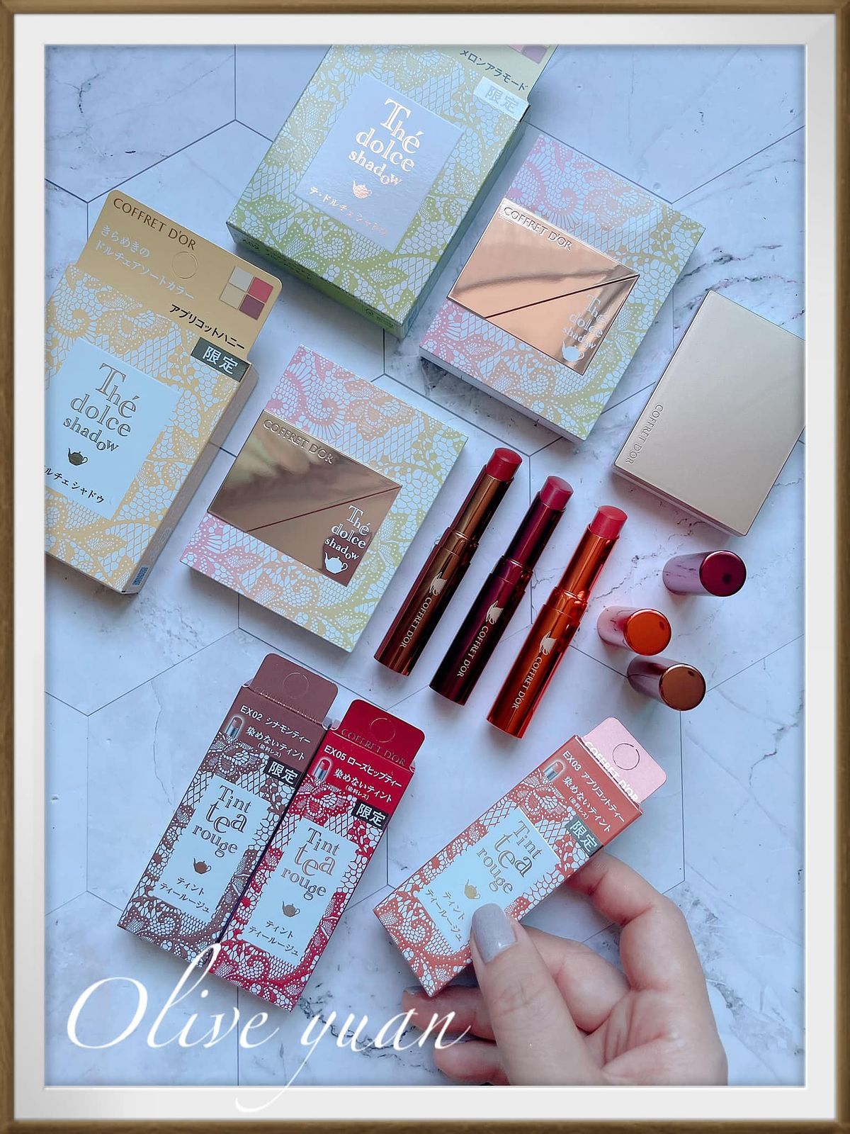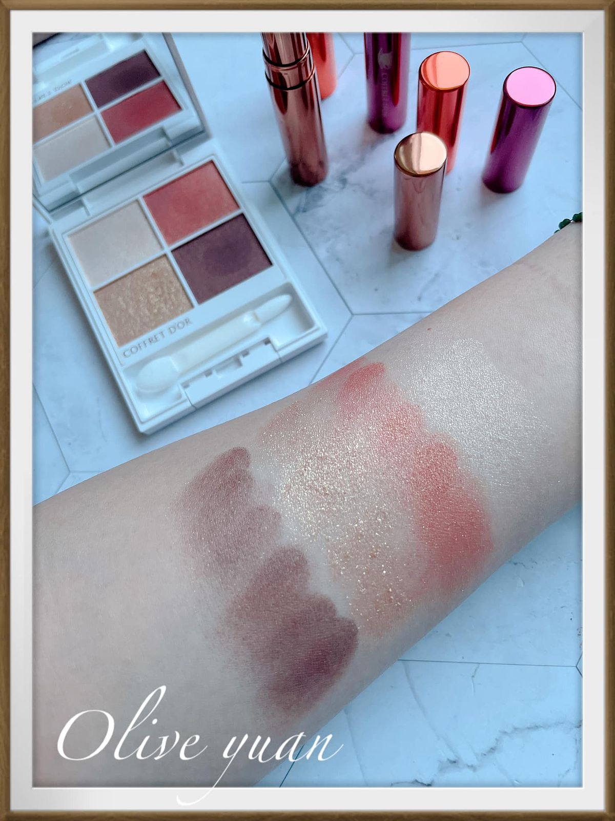 很喜歡「COFFRET D‘OR」現在都不按牌理出牌的態度,每次都讓人意想不到,而且每次都很令人驚艷,例如大家都推出秋妝的九月,才突然推出夏妝,主題爲「Summer tea party collation」,但無所謂,眼影盤外盒設計漂亮到不行,顏色組合因為以甜點為靈感,所以也不常見,就算已經快要換季也很值得入手,例如眼影盤的EX03蜜香杏桃就很適合冬天。