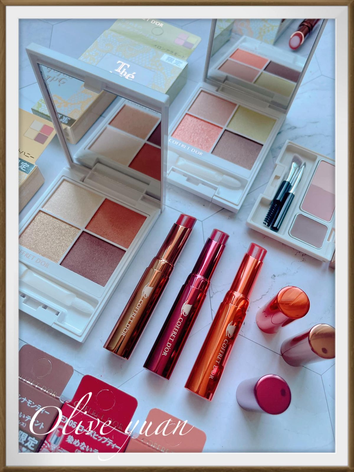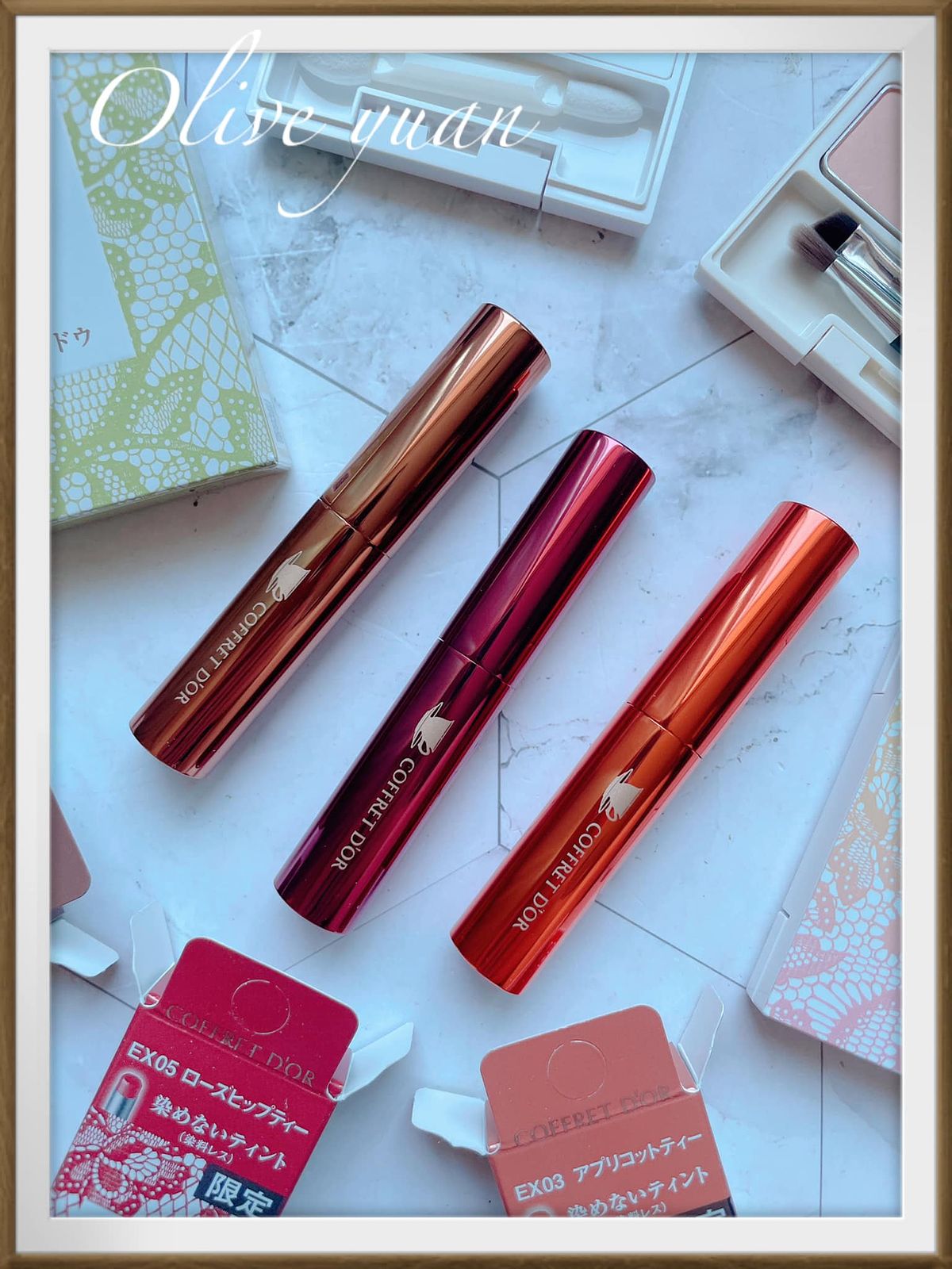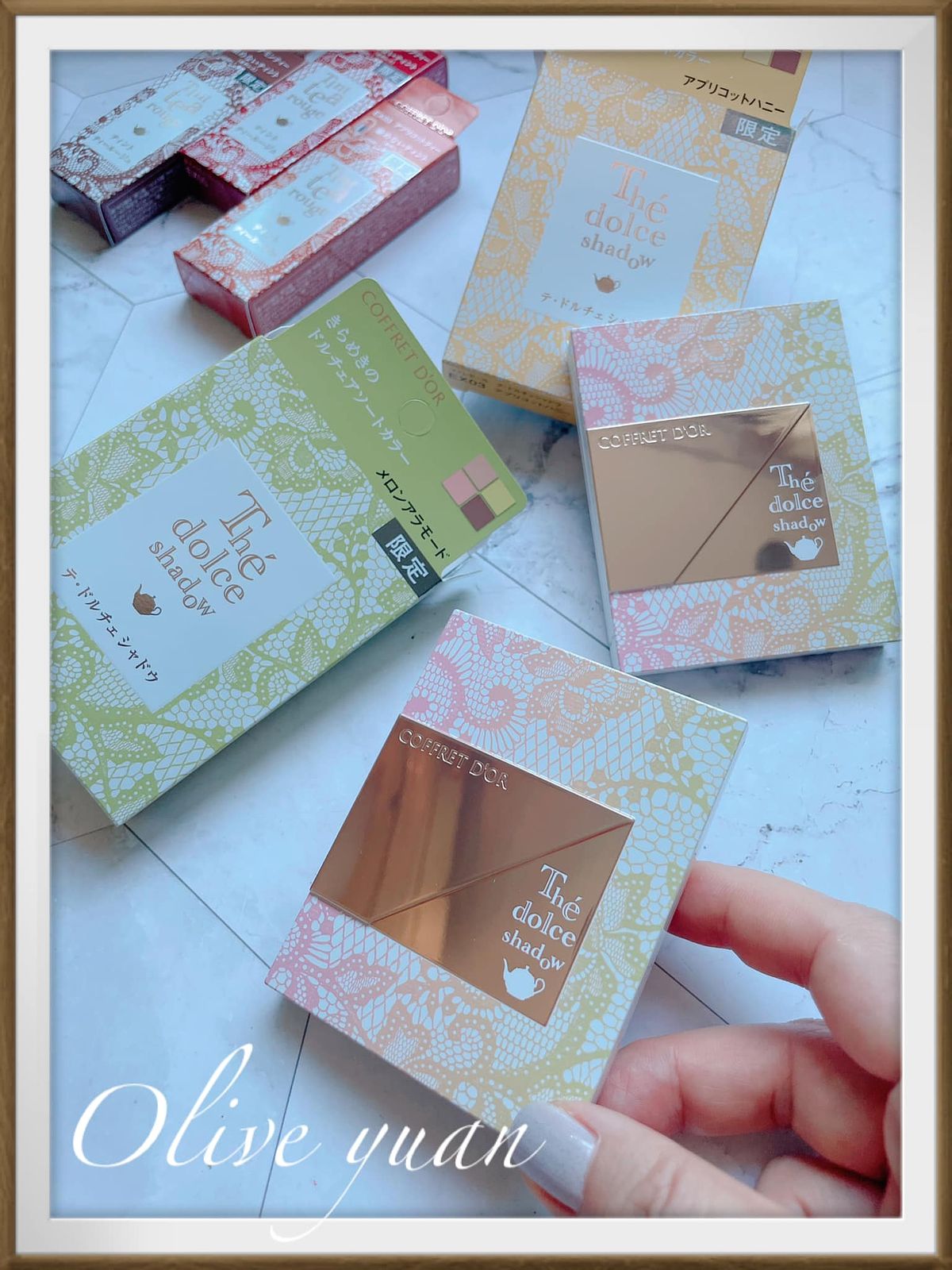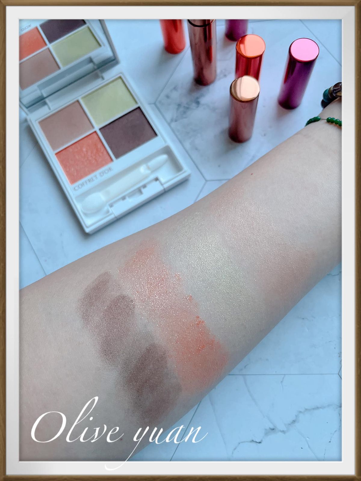 很喜歡「COFFRET D‘OR」現在都不按牌理出牌的態度,每次都讓人意想不到,而且每次都很令人驚艷,例如大家都推出秋妝的九月,才突然推出夏妝,主題爲「Summer tea party collation」,但無所謂,眼影盤外盒設計漂亮到不行,顏色組合因為以甜點為靈感,所以也不常見,就算已經快要換季也很值得入手,例如眼影盤的EX03蜜香杏桃就很適合冬天。