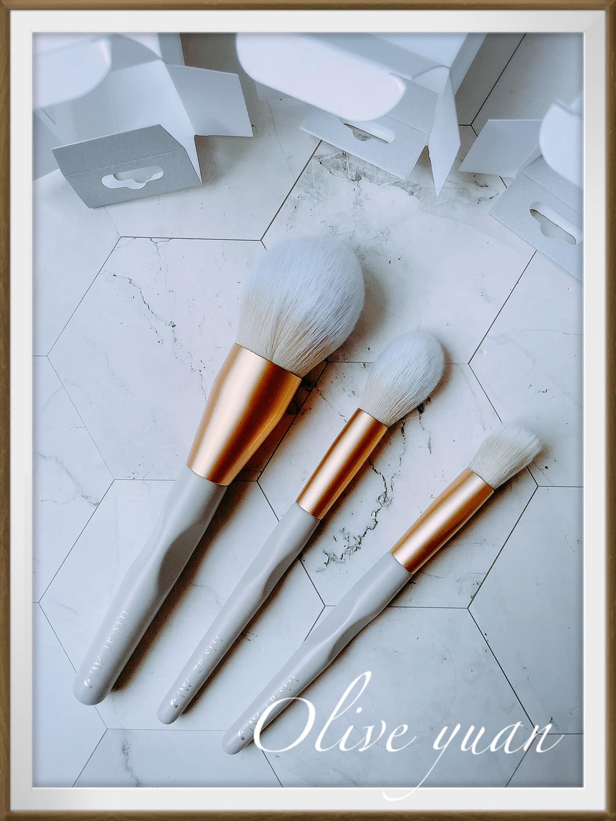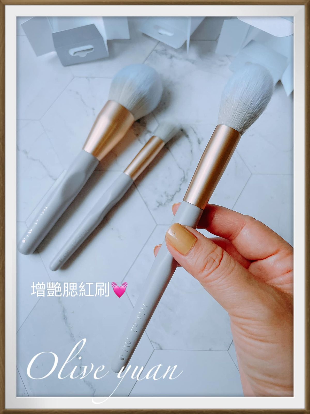 當中的「澎澎蜜粉刷、增艷腮紅刷、靚亮拋光刷」,搭配蓬鬆柔軟的人造纖維刷毛,握柄獨特的三角設計,在使用上也更順手,即便是新手也能輕鬆掌握角度,讓上妝事半功倍,握起來真的很舒服,看起來也很有造型感!