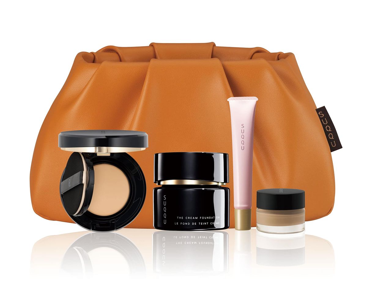 新品也有加入週年慶特惠喔!2022週年慶「SUQQU晶采光透新品組」原價NT8,265,特惠價只要NT6,750,等於下殺82折喔!內容物為:晶采光透水凝粉餅(全品)、晶采艷澤粉霜30g(17色任選),贈:晶采極潤粧前乳10g、晶采艷澤粉霜4g(顏色隨機)、皮質化妝包(這包包很好看耶!)