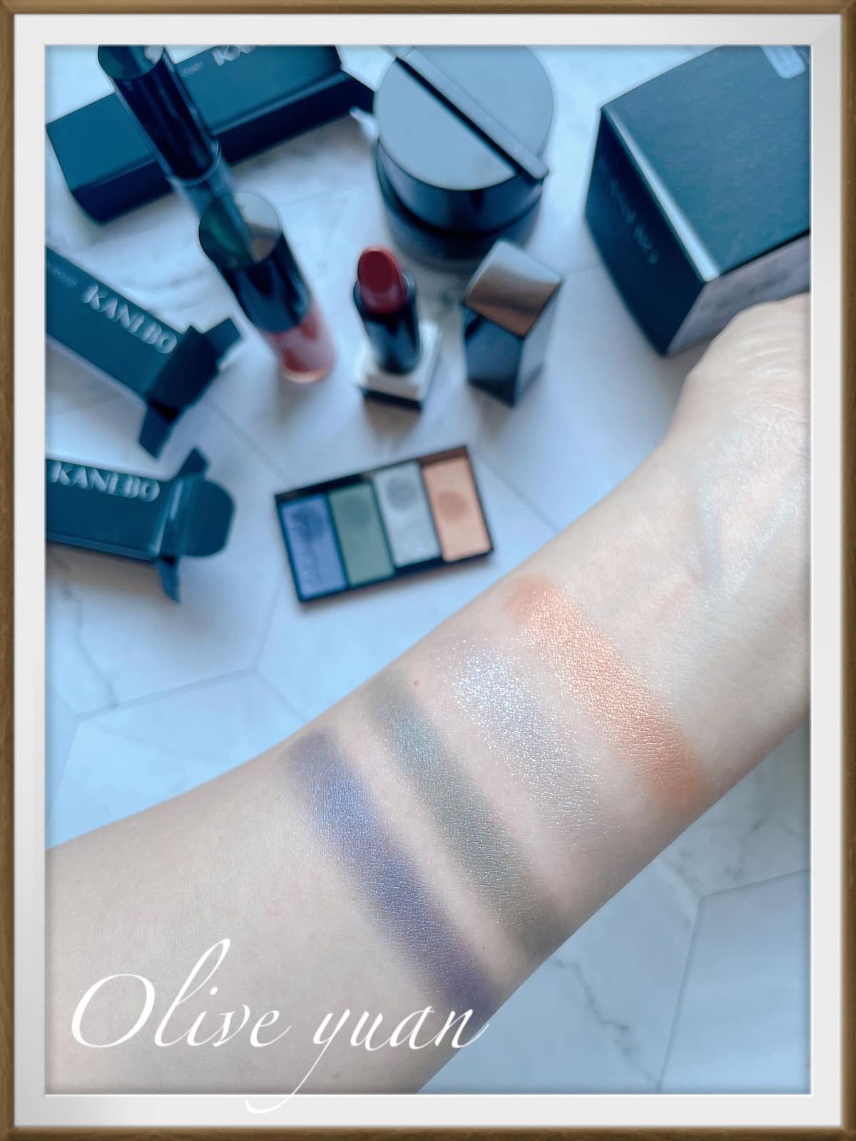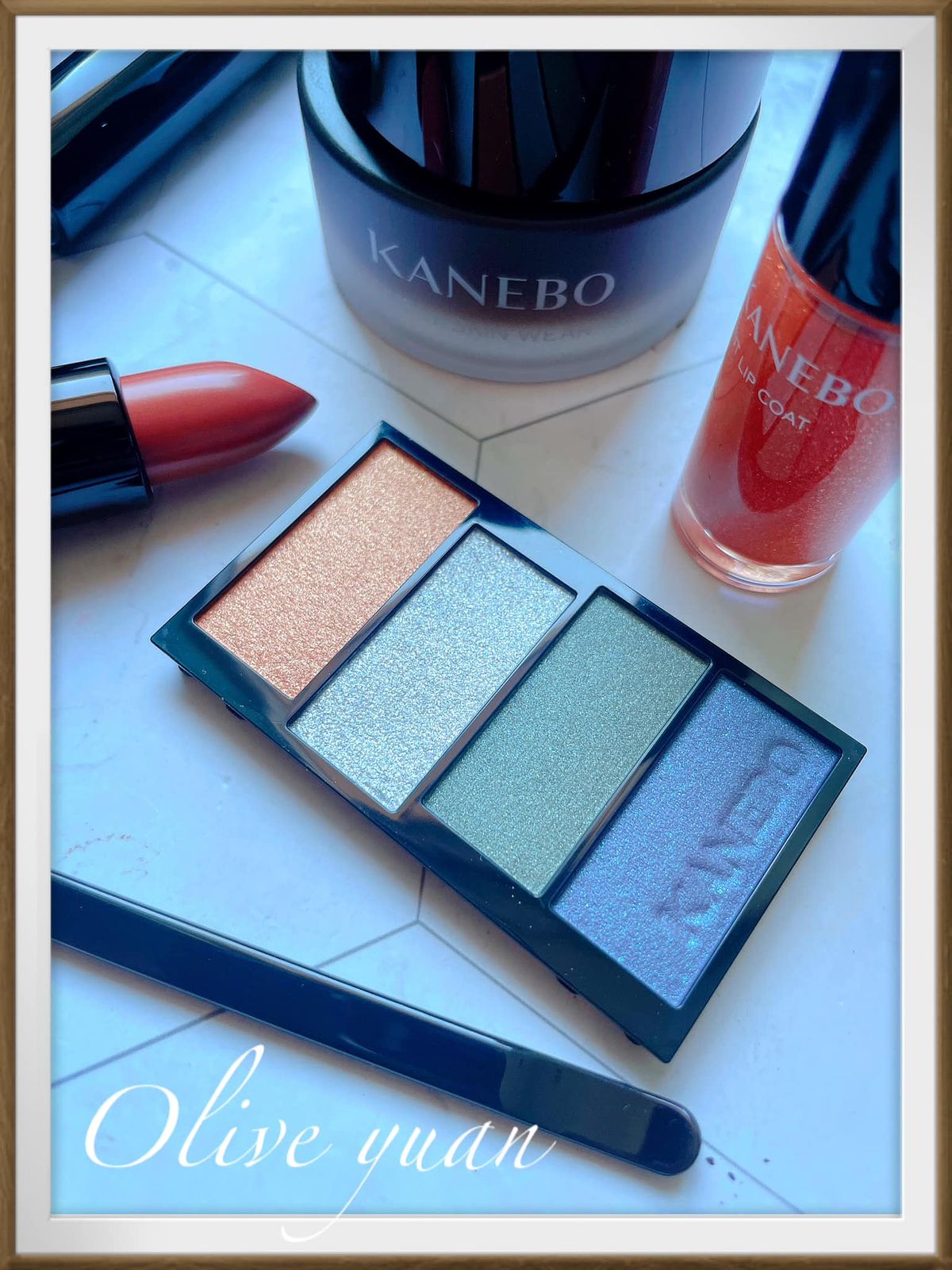 I HOPE KANEBO.好美又好簡單的一句話,而這次推出的幾款限量彩妝也很多彩,填裝在亮黑色瓶器中的每個顏色都好美,「KANEBO光輝重奏四色眼彩(1,120不含外盒)」有2款限定色,我入手的EX-03限定色─山野風情對消費者來說,有著難上手的藍及綠,但先以橘色調打底,再壓上少量的藍與綠,顏色會很柔和。