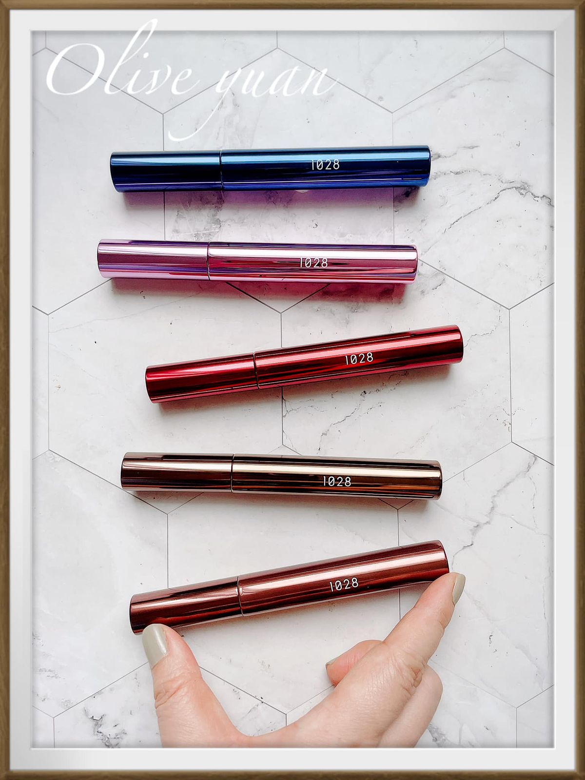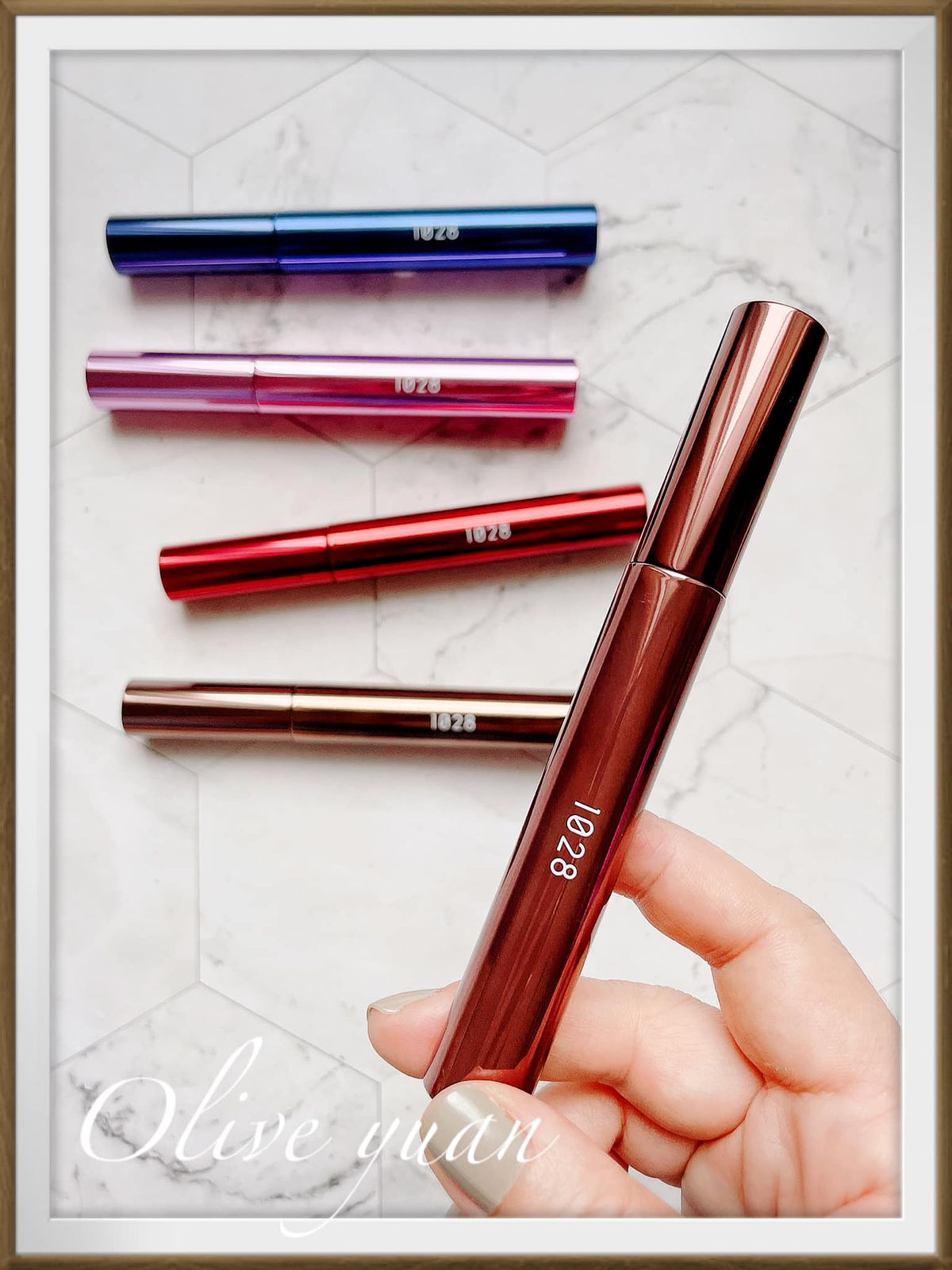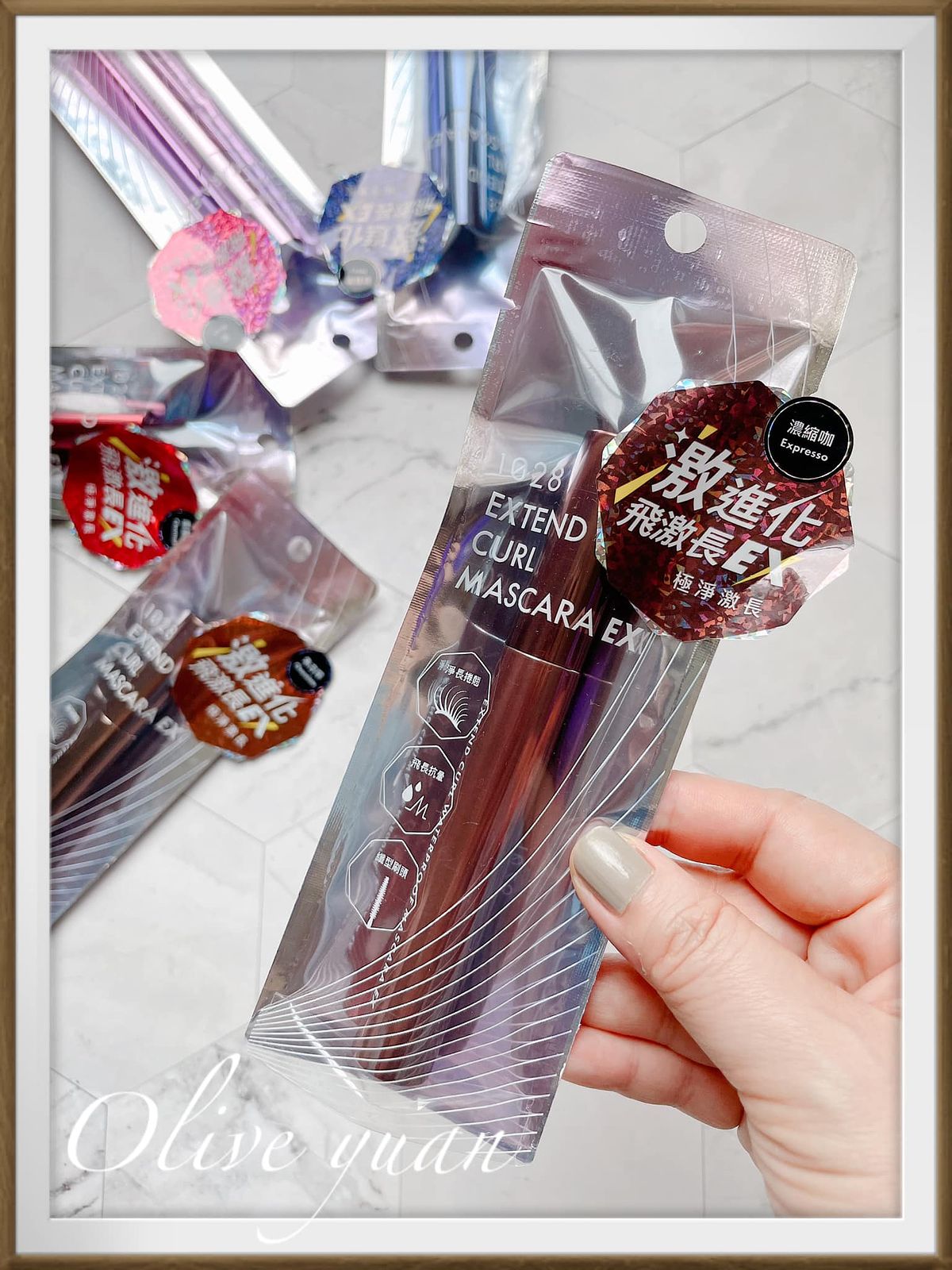 這5支不同顏色的睫毛膏擺在一起真的好美,而且1支才NT390耶!如果藥妝店有優惠活動的話,真的可以5色全掃!尤其“靛暮黑”及“栗果棕”好特別!這是1028推出的「1028飛激長瞬翹防水睫毛膏EX(8g NT390)」,2.0全新有感升級。