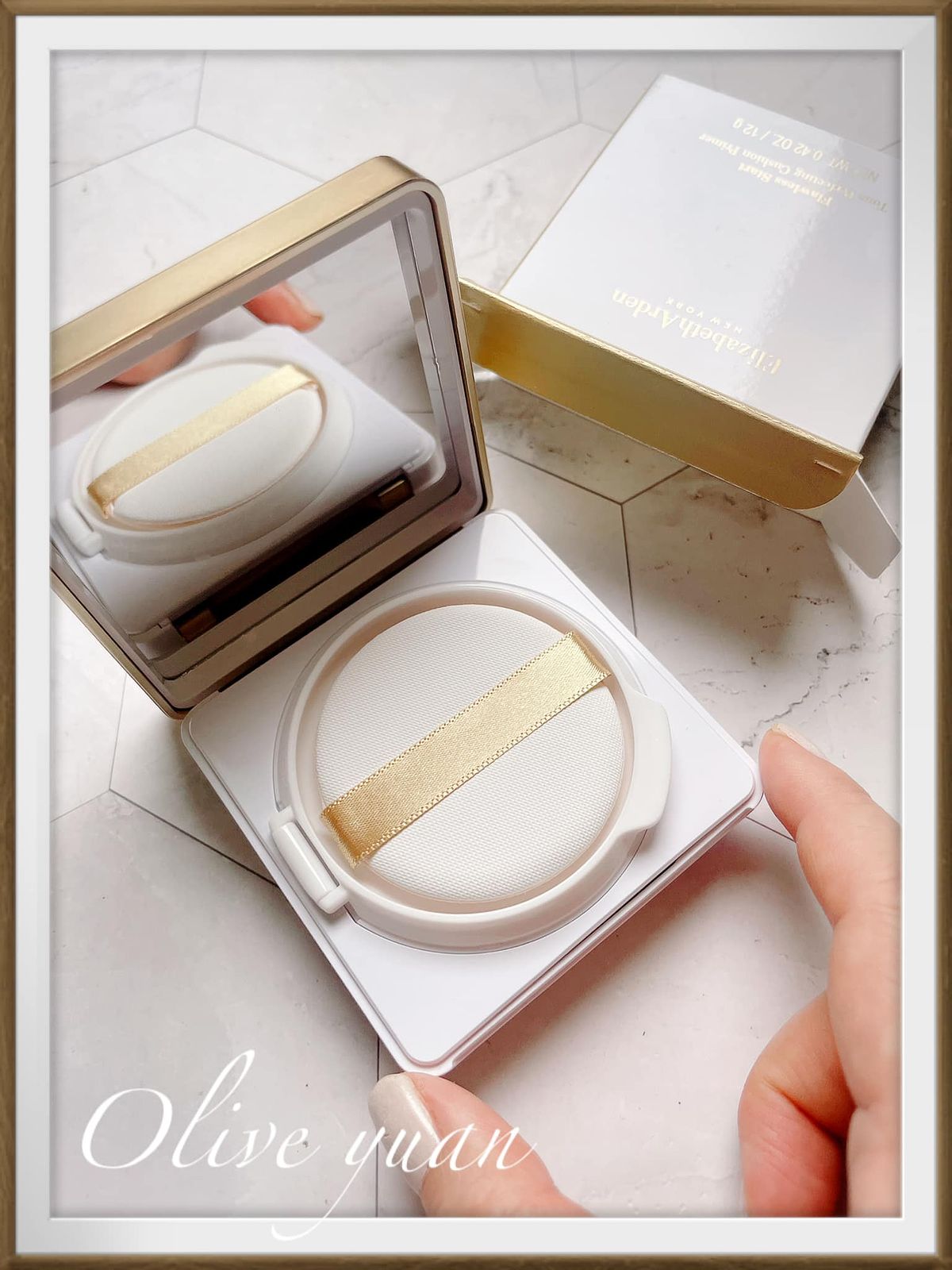 最近終於有時間去Check一下公關品山,然後發現這款「伊麗莎白雅頓」的氣墊底霜很好用耶!之前收到時還覺得它好不雅頓喔!因為太可愛!但外盒設計是雅頓風格沒錯!它是「無瑕亮采調色氣墊底霜(NT1,500)」!