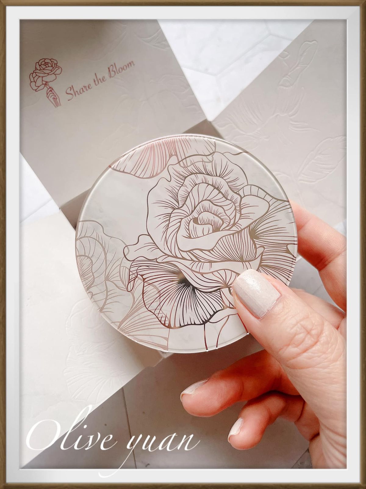 這次的外盒及粉盒設計則是以非洲玫瑰的輪廓、花脈線條來描繪,加上裸粉色打底,由內而外展現出自然之美。