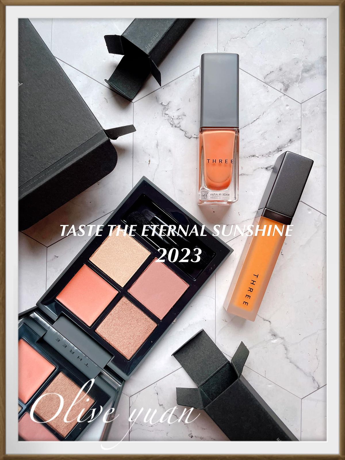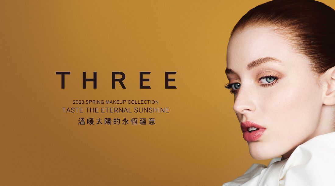 TASTE THE ETERNAL SUNSHINE溫暖太陽的永恆蘊意。以太陽為主題的彩妝不一定都得要超級閃亮亮的金色或古銅,代表太陽能量的顏色也可以是被陽光照射後物體的顏色,例如裸黃、向日葵橘及裸感柔粉等不刺眼的顏色,這次THREE推出的2023早春彩妝就屬於這樣的顏色,一種令人安心的溫柔存在。