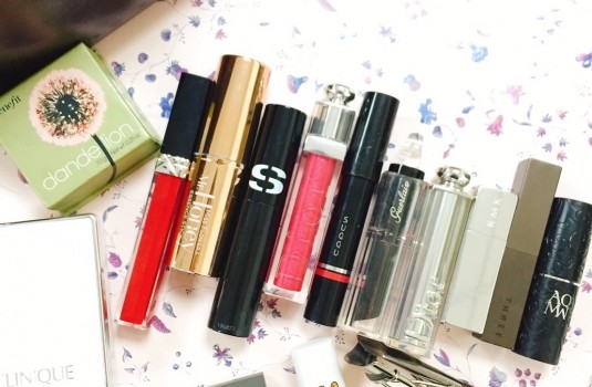 我出門其實身上都不會帶化妝包耶..(超級懶會嫌很重),這一包是放在辦公室的化妝包,唇彩都是從隨身的包包拿出來的,我是唇彩控~用到喜歡的唇品就會丟進包包,這幾支顏色都超美的而且很保濕!