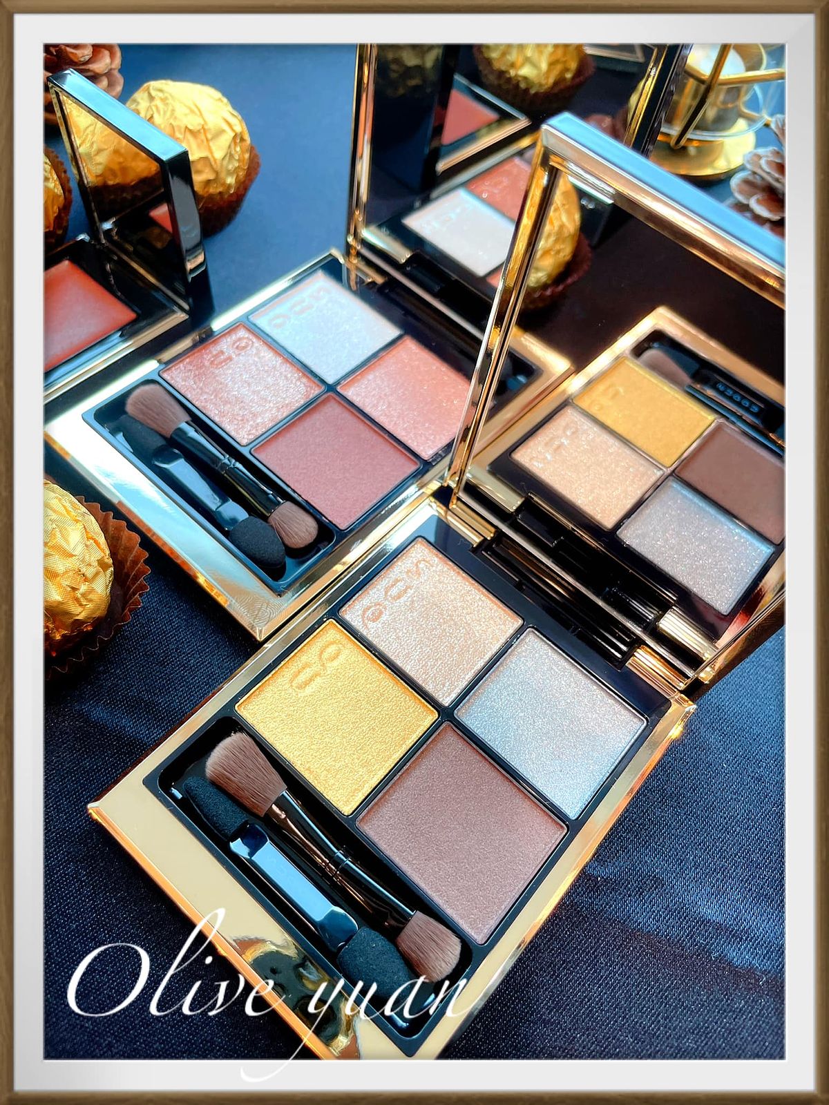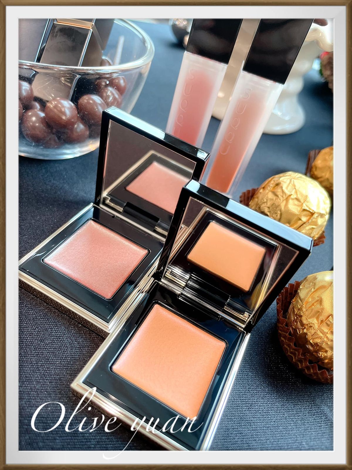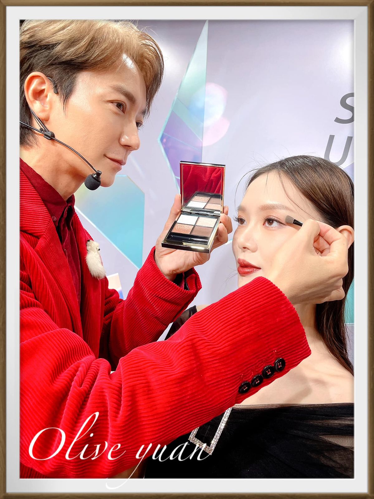 添加紅色、金色珠光的眼彩霜光芒搖曳,眼、頰、唇都能用,單擦或疊擦都OK,成分中還有保濕成分及橄欖油。史丹利老師建議用於鼻樑或是顴骨處,快速“加入仙氣”,還說這一小盒可是派對黑馬喔!