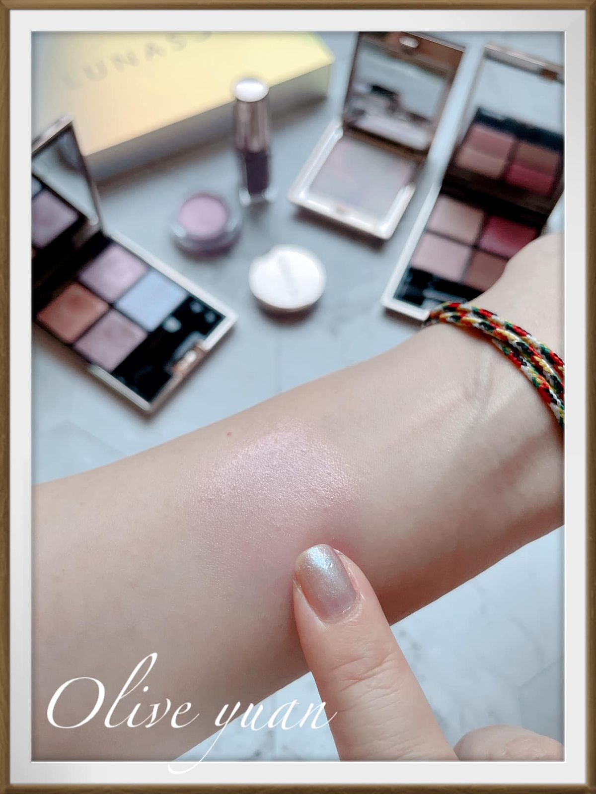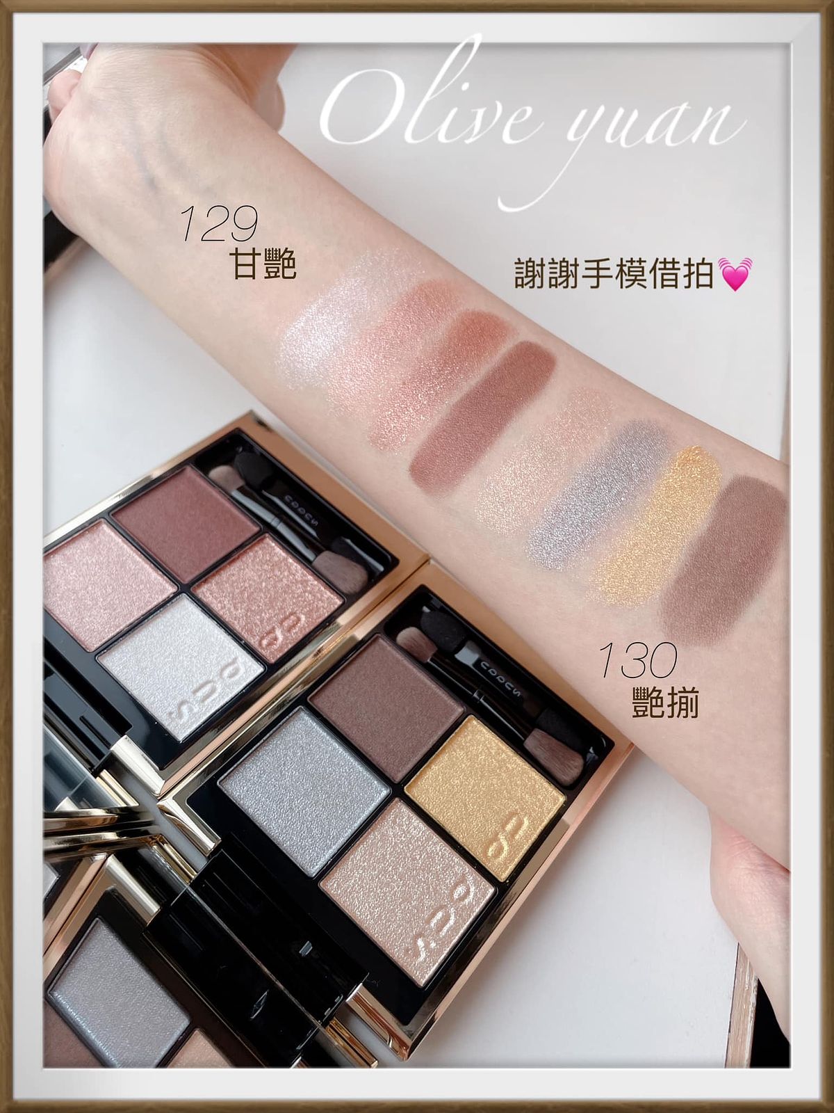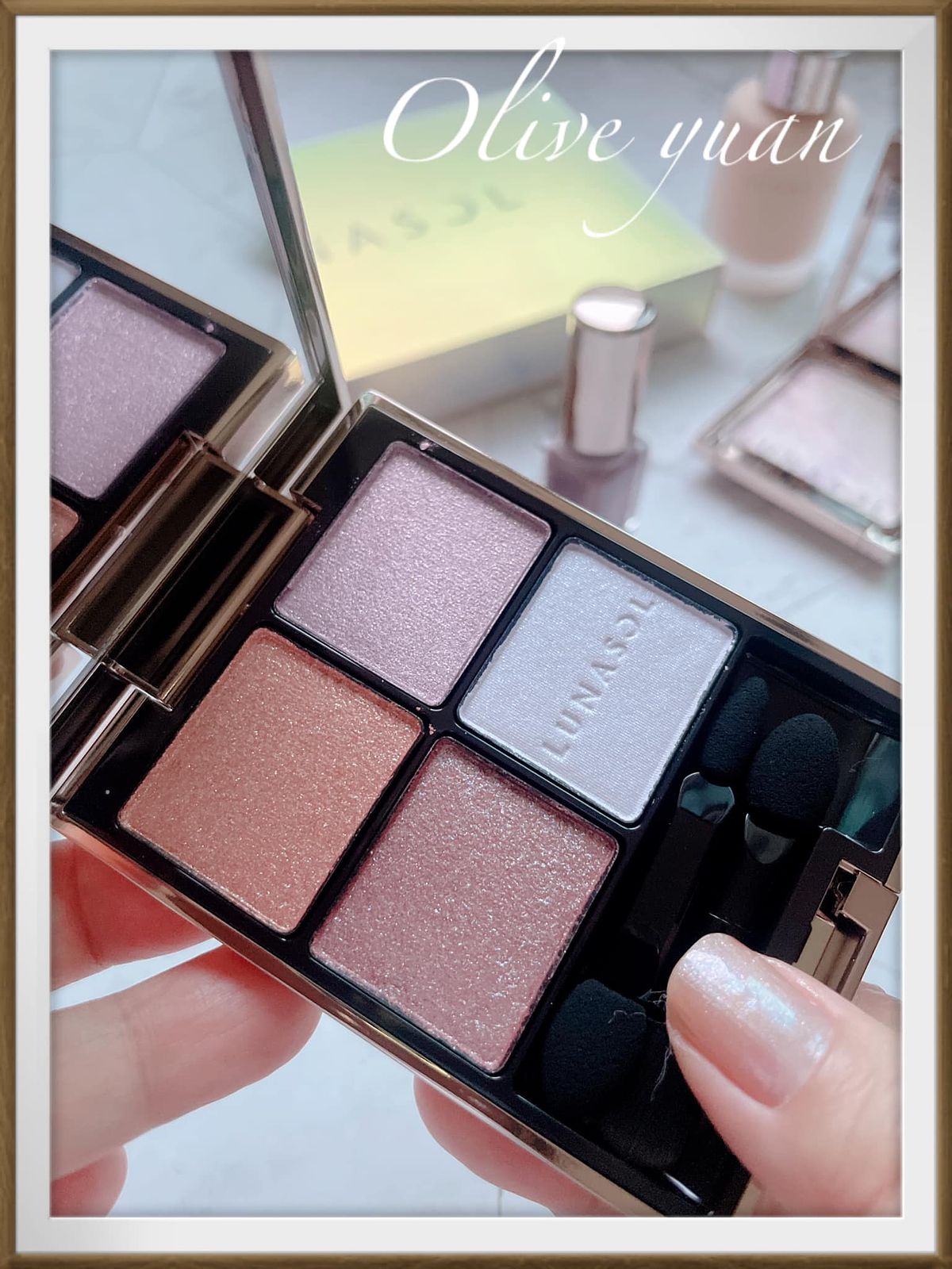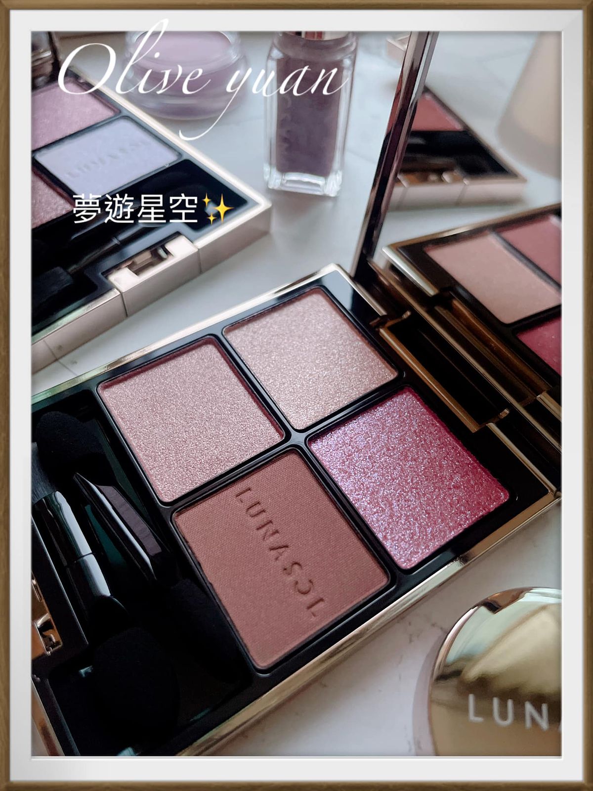 很意外的~它並不是難駕馭的那種紫,因為它會幻化出各種光芒,畫起來很像淺棕眼影帶有紫粉光但非常閃耀,難怪彩妝師─史丹利說這盤是新手也能輕易駕馭的派對眼彩,比起其他更好上手,也是日常也能使用的顏色。