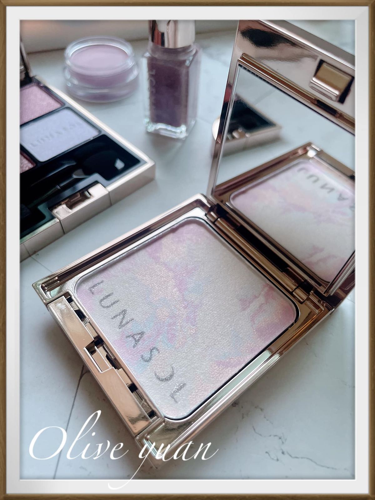 紅、粉、藍、紫4種色彩交融出亮燦氣色感,由極細粉末描繪出大理石花紋,是一款增添冬日節慶氛圍的亮顏餅,還被預測為LUNASOL今年最強蜜粉餅,有柔霧功效(血色感及透明感),夾層還藏有大面積刷具,絕對是年末前的缺貨王保證。