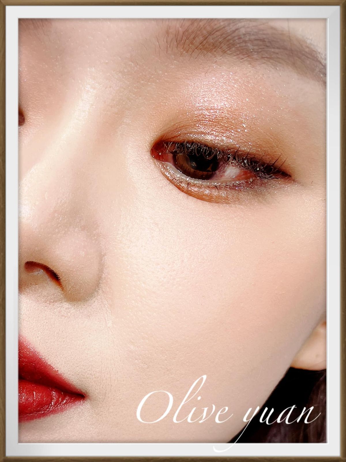 先以129甘艷眼影右下深色於陰影部位,接著用左下珠光做大面積上色,可以感受到這珠光是“直衝等級”的閃亮,極為耀眼,右上水波珠光則使用於眼下,最後上眼皮壓蓋上一層左上珠光,整體眼妝充滿皇家貴氣感!