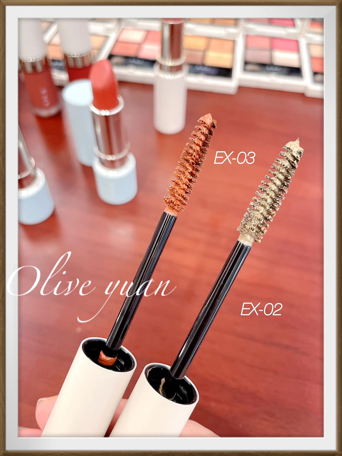 一直覺得這種顏色的睫毛膏好用嗎?這種淺色不是會讓眼神更無神嗎?原來重點在於─必需把睫毛好好夾翹,之後再刷上顏色的話,就不會感覺壓迫到眼神。EX-02是灰褐金色,一刷上就很明顯,EX-03是帶橙色的紅土色調,必較深一些,所以我入手這顏色比較習慣。但彩色睫毛感覺很清新,很春天!