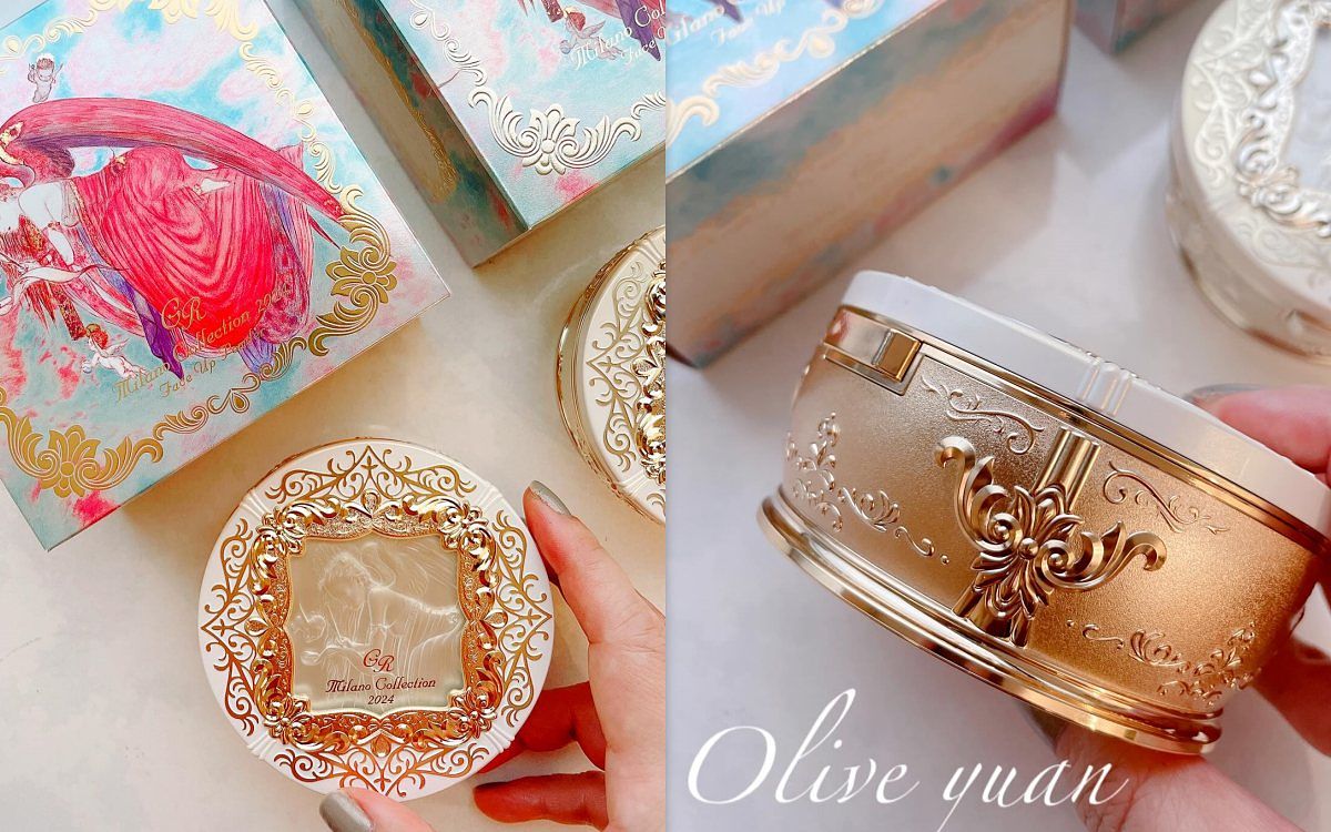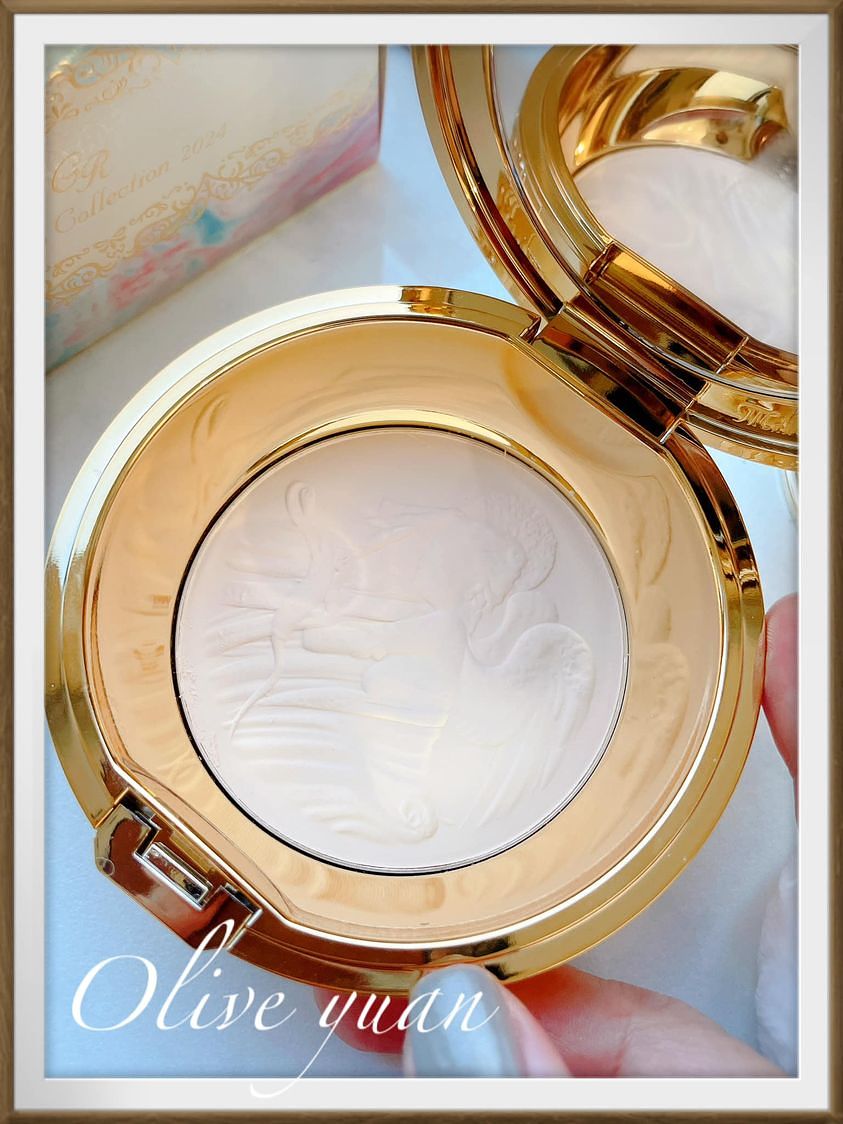 「米蘭絕色蜜粉餅2024(24g)」都有附粉撲,一般版本為NT3,350,限定組則多一顆粉蕊NT5,600,對我來說,我一定會買限定組,其一粉蕊可以收藏,因為上面的天使浮雕太美了呀!這次的保養成分除了原本的「玻尿酸、蜂王乳精華」,還新追「高山火絨草花/葉萃取」加強保濕度。