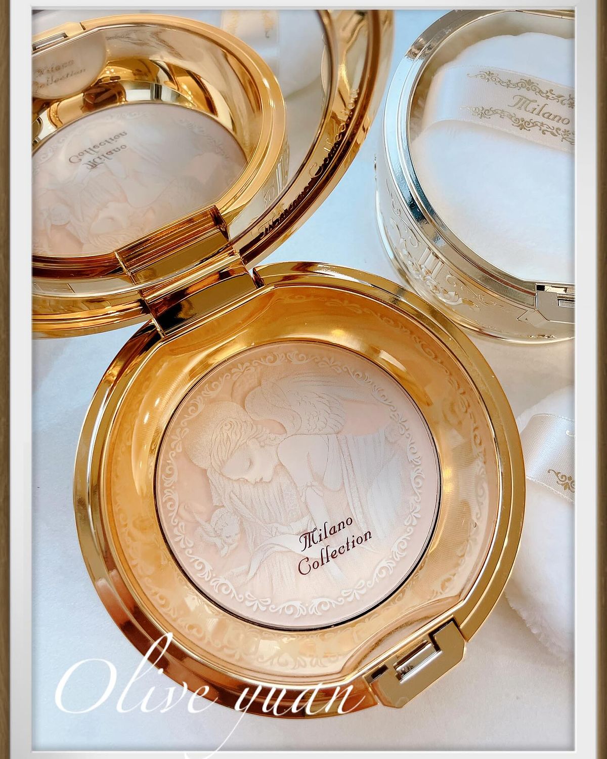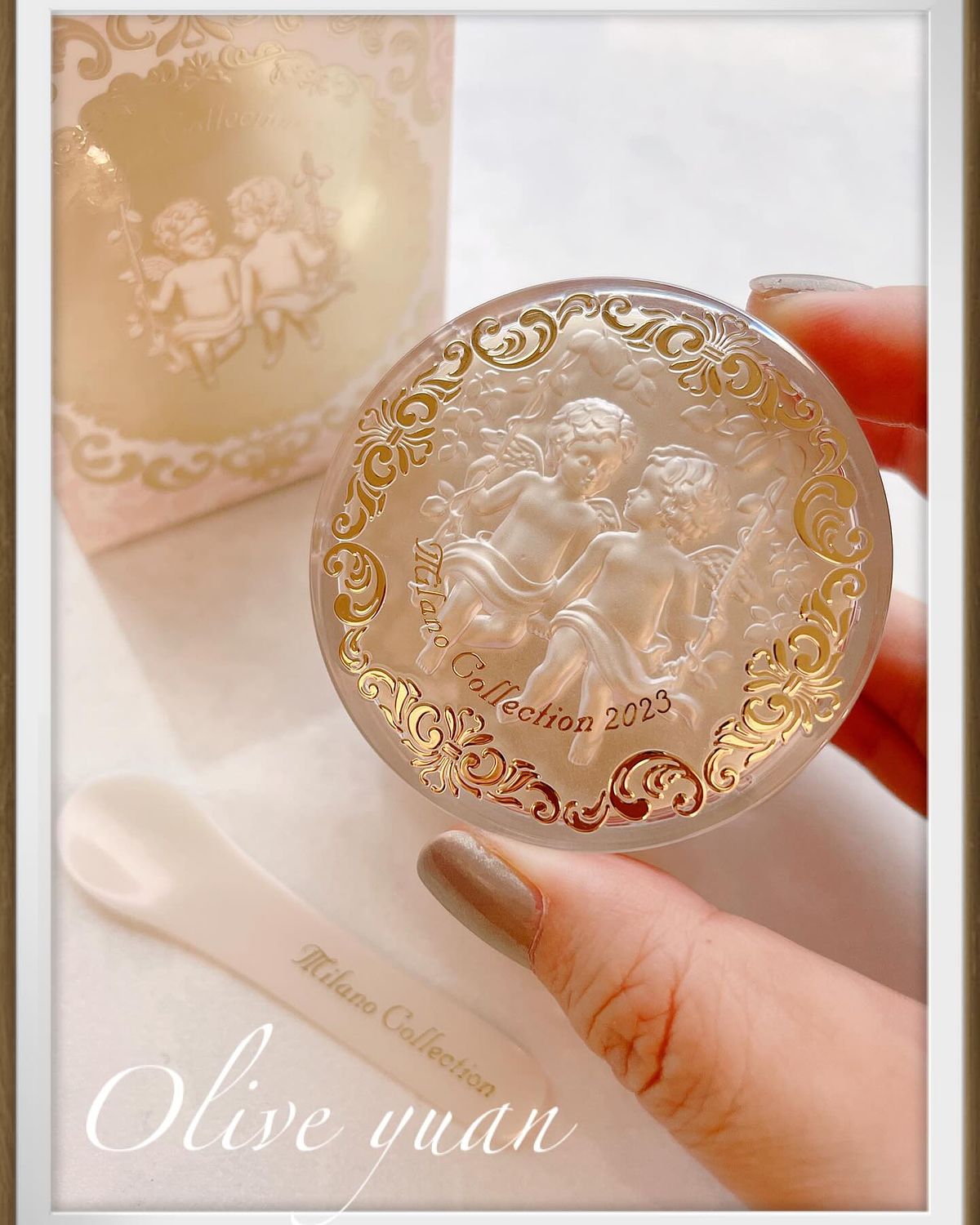 品牌擔當說:「妳一定要看看這次的米蘭系列,因為它們真的是太美了!而且這次還有推出妝前美肌乳喔!」!果然!除了美肌乳、絕色蜜粉餅、蜜粉餅限定組、香水外,這次還跟日本藝術家─天野喜孝合作繪製米蘭天使,而且是以聖母瑪利亞為形象繪製的“成年天使”,實在是太珍貴了!更是時代創舉!