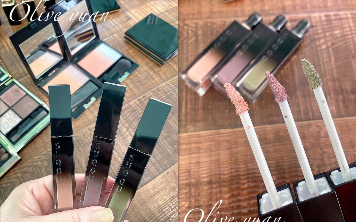 這兩盤顏色其實有讓我夏一跳,好像不曾看過這麼淺的SUQQU眼影,但也因為唇膏大回歸,所以“唇膏豔眼影就淺”的上妝邏輯又回來了!而且這顏色就在模擬“鏡光水面浮現櫻花美景”的倒影,然後將水光編織的唯美漣漪交織於雙眸, 讓眼神環繞溫暖柔穩的目光。(左下的光感色,靈感就是來自倒映在水面上波光粼粼的模樣,這淺色~亞凡老師建議可用紮實刷具抓粉會較顯色)