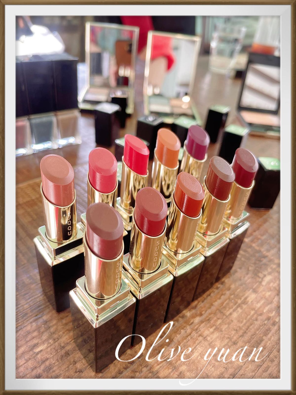 唉呀!有多久沒看到這麼多唇膏擺在一起的樣子了?!一次10種顏色而且都好美!一抹~疑?!好像彩色的潤唇膏!當然還有眼影、腮紅及指甲油,但顏色都淡淡的耶,SUQQU 2024 Spring Color主題為「春を溶いたら。(春天融化時)」。