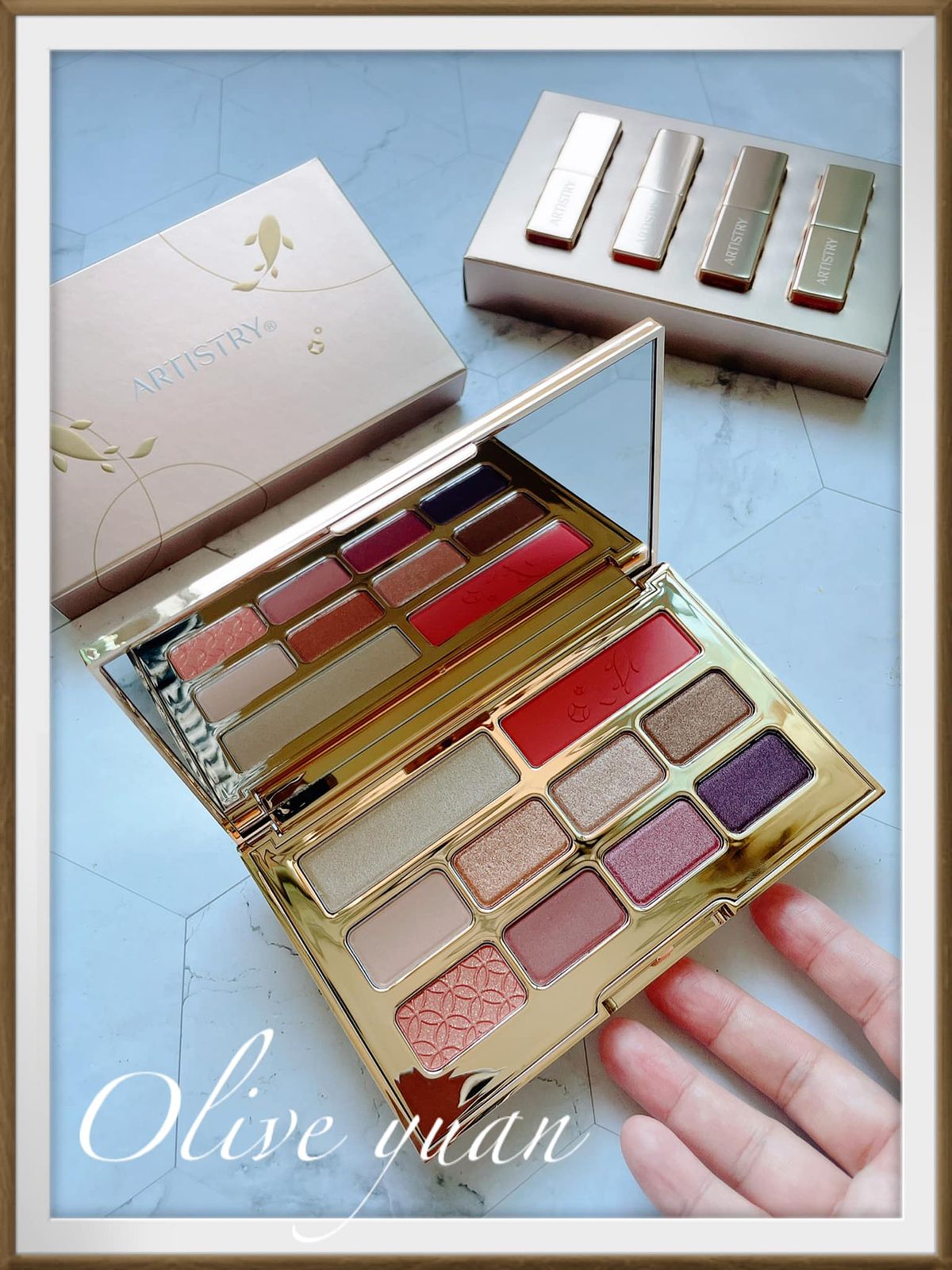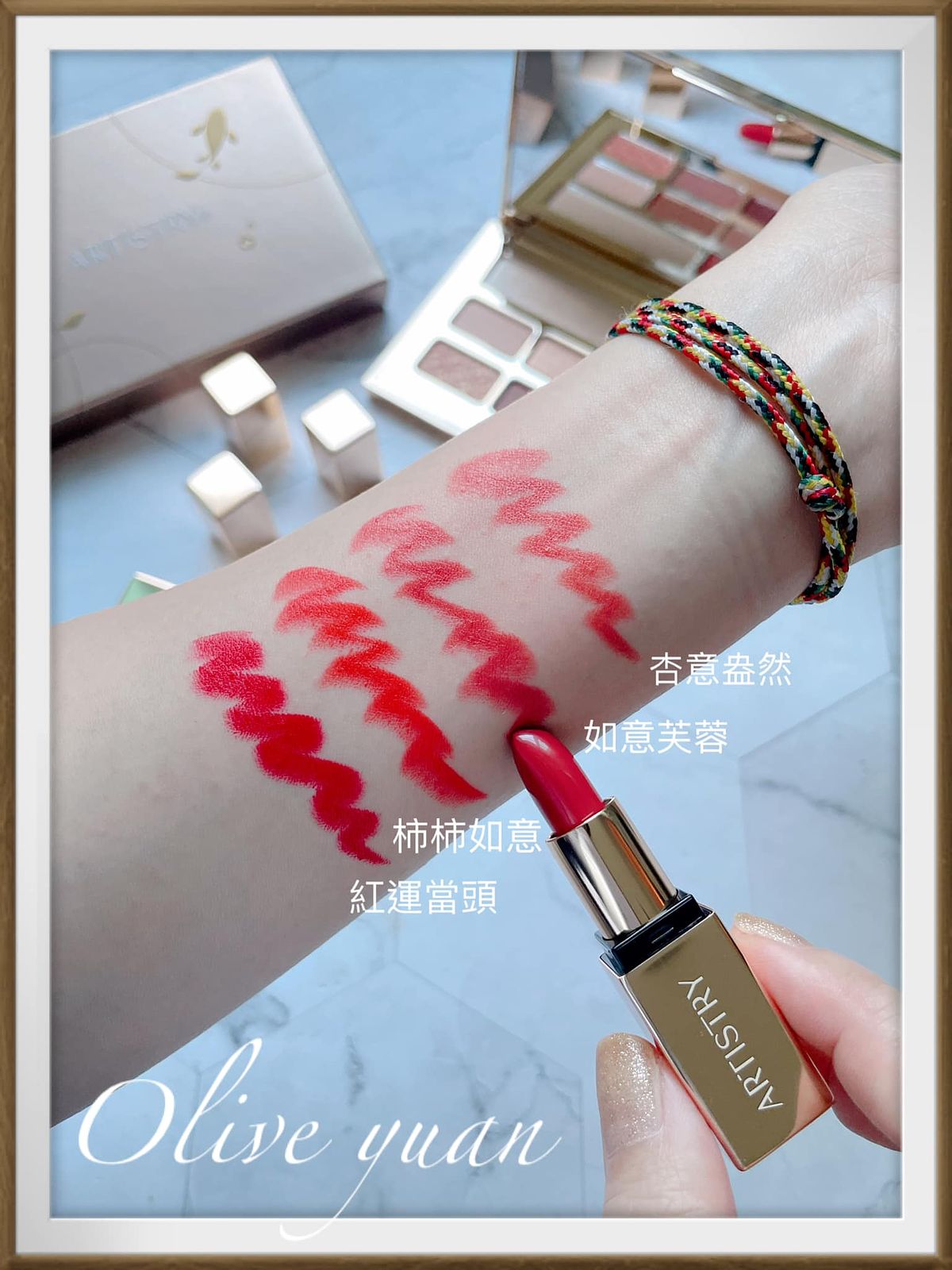 這組彩妝好“過新年”耶!除了金光閃閃的外包裝,唇膏及眼影的顏色也充滿喜氣,連產品名稱也很威,它們是Amway集團旗下─「ARTISTRY雅芝」在龍年推出的限定「開運錦鯉彩妝系列」,有「開運錦鯉彩妝盤」及「開運錦鯉迷你唇膏組」。