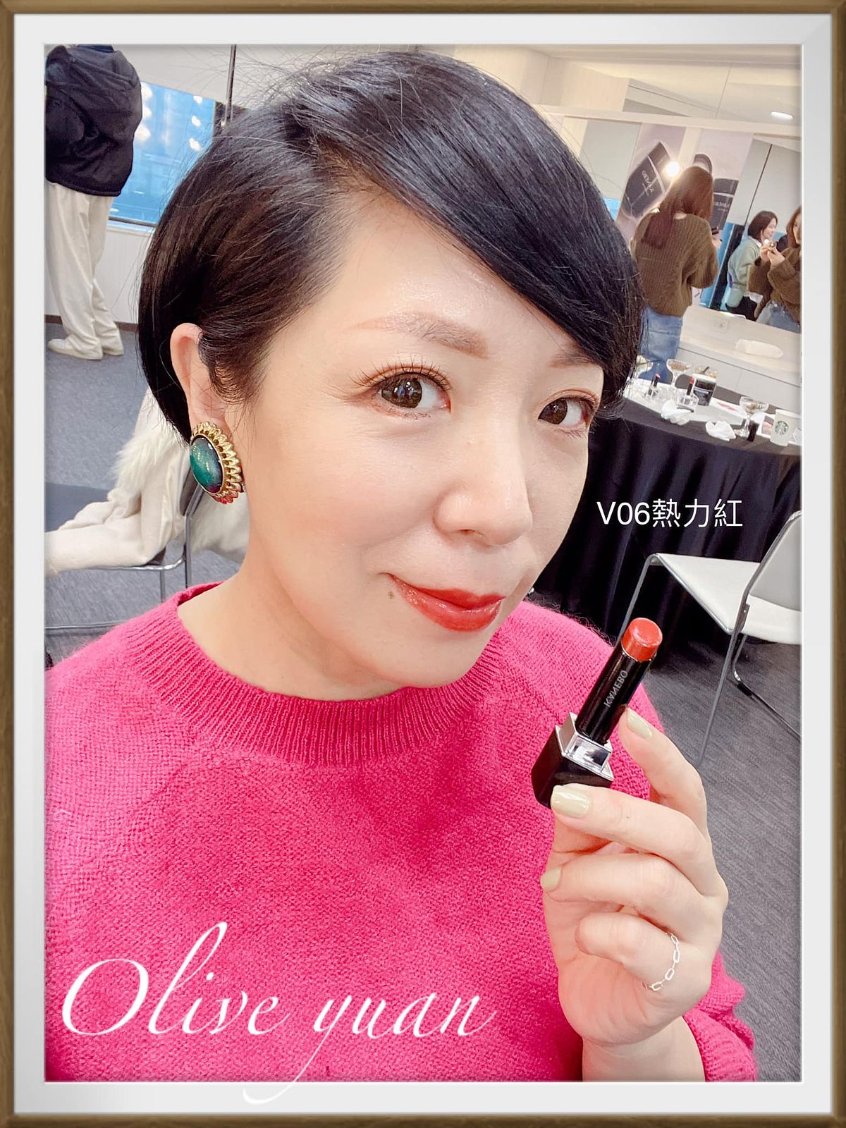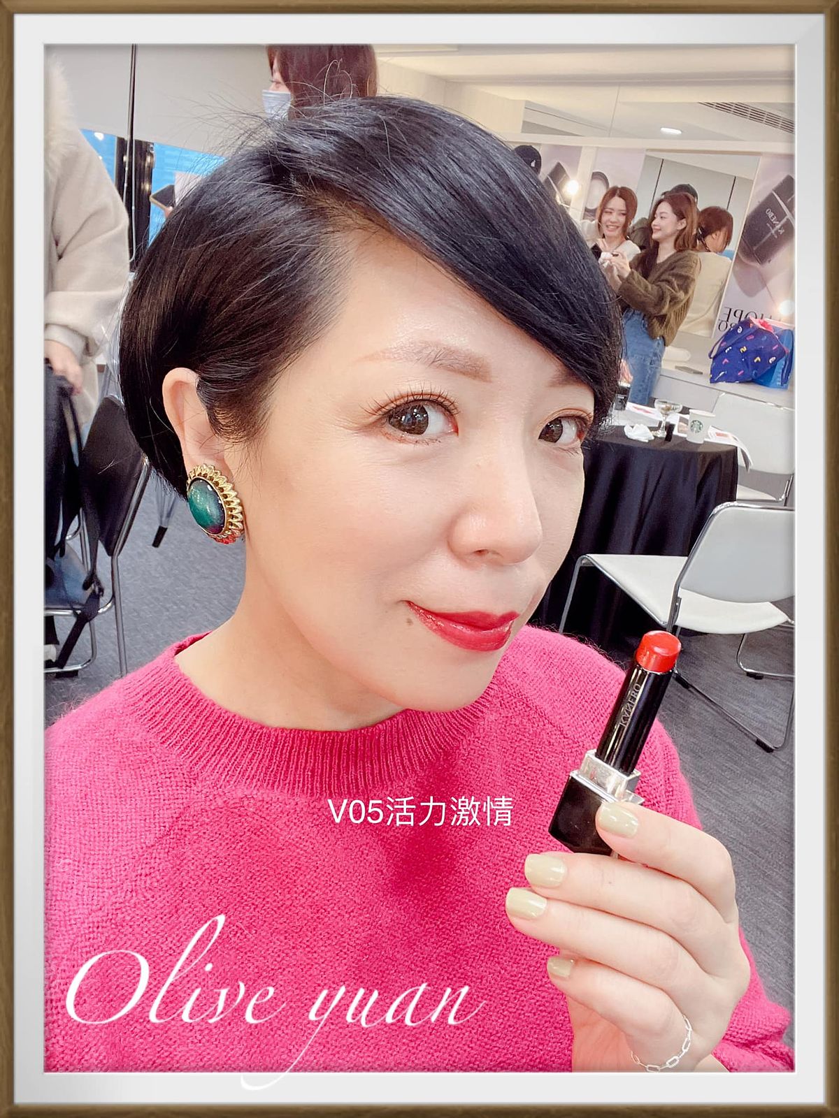 對了!我原本很猶豫到底要V05活力激情?還是V06熱力紅?後來亞凡老師跟麵麵老師幫我選了V05活力激情(代言人─17歲中島Sena用色),說我用這款很顯白!