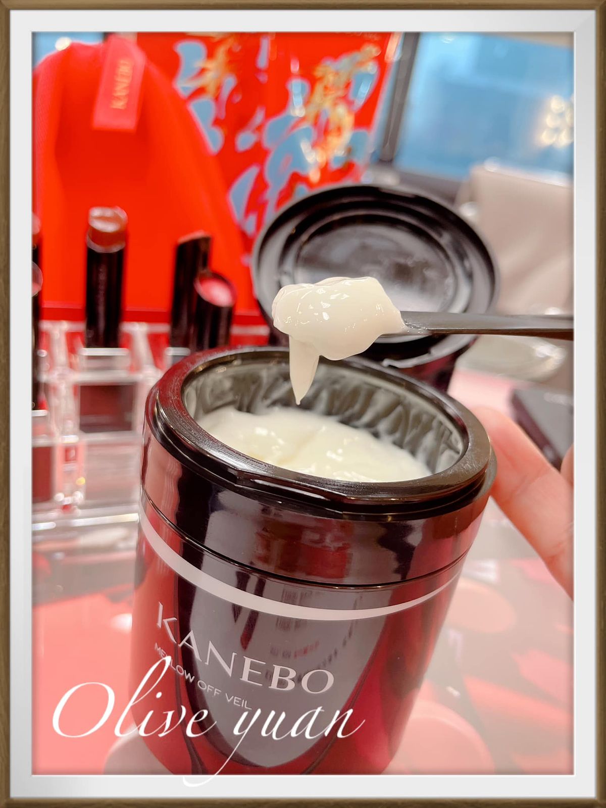 回到保養部分,「舒顏盈潤卸妝霜(160g NT2,200)」當天也很受矚目,因為沒看過這種微透~具奶酪彈性的卸妝霜,附贈的東京鐵塔造型挖勺更受歡迎,時髦又可站立,不會沾到洗臉台面,一開蓋就聞到KANEBO獨家香氛─清麗茶花!好香!