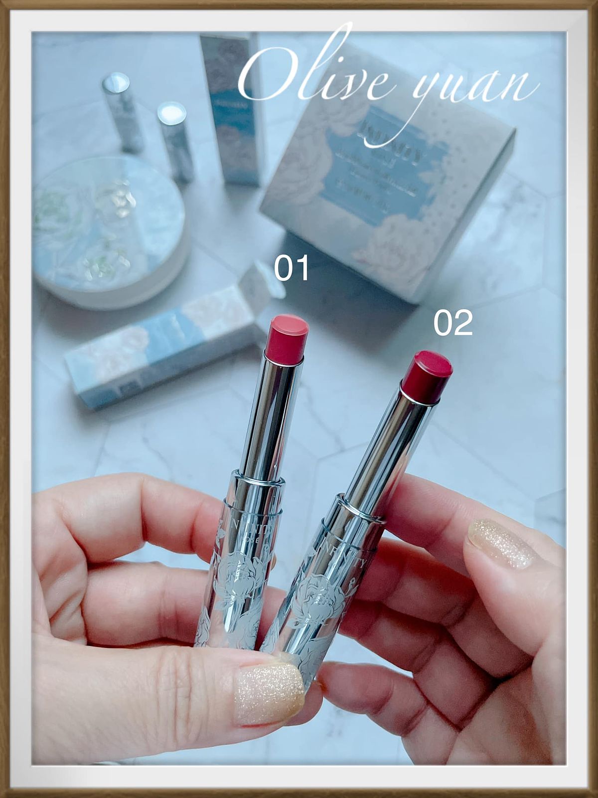「薔薇柔光豐潤唇膏」01為優雅薔薇(溫柔粉色),02為華麗薔薇(華麗典雅),2色我都很喜歡,而且它還有添加涼涼「薄荷醇」,也有跟蜜粉一樣的活力玫瑰花香,淺藍瓶器更是優雅漂亮,跟蜜粉是同一組設計。