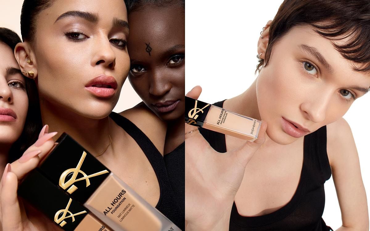 圖片來源:YSL#午夜粉底,突破遮瑕型粉底厚重、暗沉以及面具感印象,以最輕持妝粉底橫掃全球美妝圈,搭配全新【恆久完美精準無瑕遮瑕液】一筆保濕服貼、無痕遮瑕的特色,對於新世代追求彷彿沒有上底妝的天生好膚質可說是天降命定,揮別瓶瓶罐罐,不用耗費時間層層打底,只要用「午夜粉底X精準遮瑕」,立刻放大保濕續航力,急速飆高養膚能量,每一層都薄透、補水、勻亮肌膚,不論是嚴重乾肌或脫妝油性肌都能全天持妝換發高奢柔霧光,輕鬆創造無懈可擊高級裸霧肌,不再擔心底妝卡粉、融妝,近看粗糙不光滑的窘境,每一天都是高調到令人稱羨的天生無瑕。