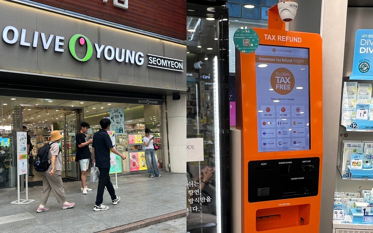 多數Olive Young都有提供現場櫃檯退稅服務,注意結帳櫃檯都會出示立牌!2024年新制開始,現場消費只要滿₩15,000,出示護照就能以「免稅價格」結帳囉~部分Olive Young店內也有退稅機器,如果有其他需要退稅的單據攜帶過去也可以退稅,簡直不要太方便!