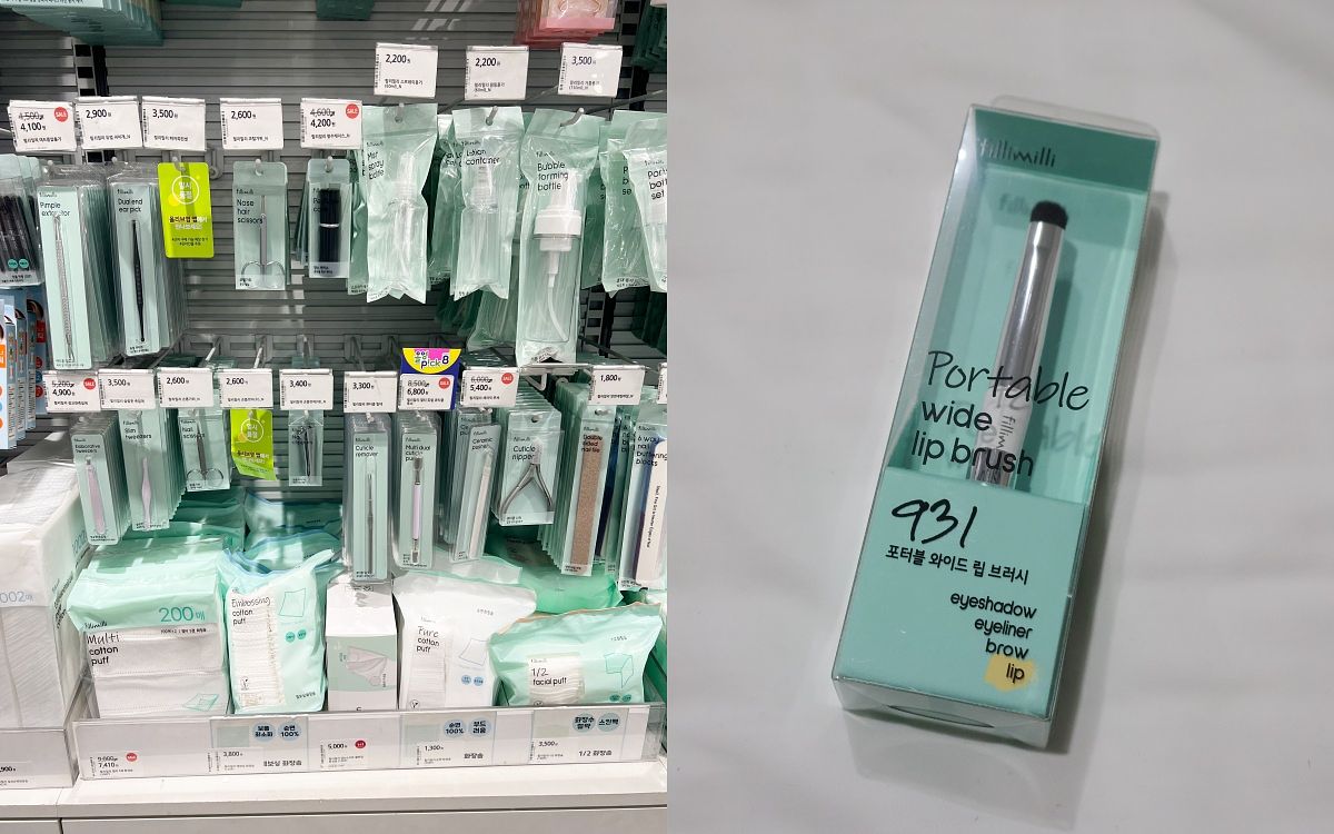 在Olive Young可以找到Fillimilli 美容工具小物專櫃~這裡各種刷具、粉撲、化妝棉通通都一應俱全,可以選擇自己需要的產品下手啦,單價可愛也不雷,來到Olive Young千萬別錯過!特派員大推931,可以做為眼影刷或是唇刷,還自帶蓋子可隨身攜帶喔~