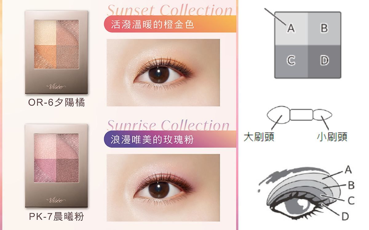 依照A、B、C、D的順序,沾取適量,輕柔地延展於眼眸。