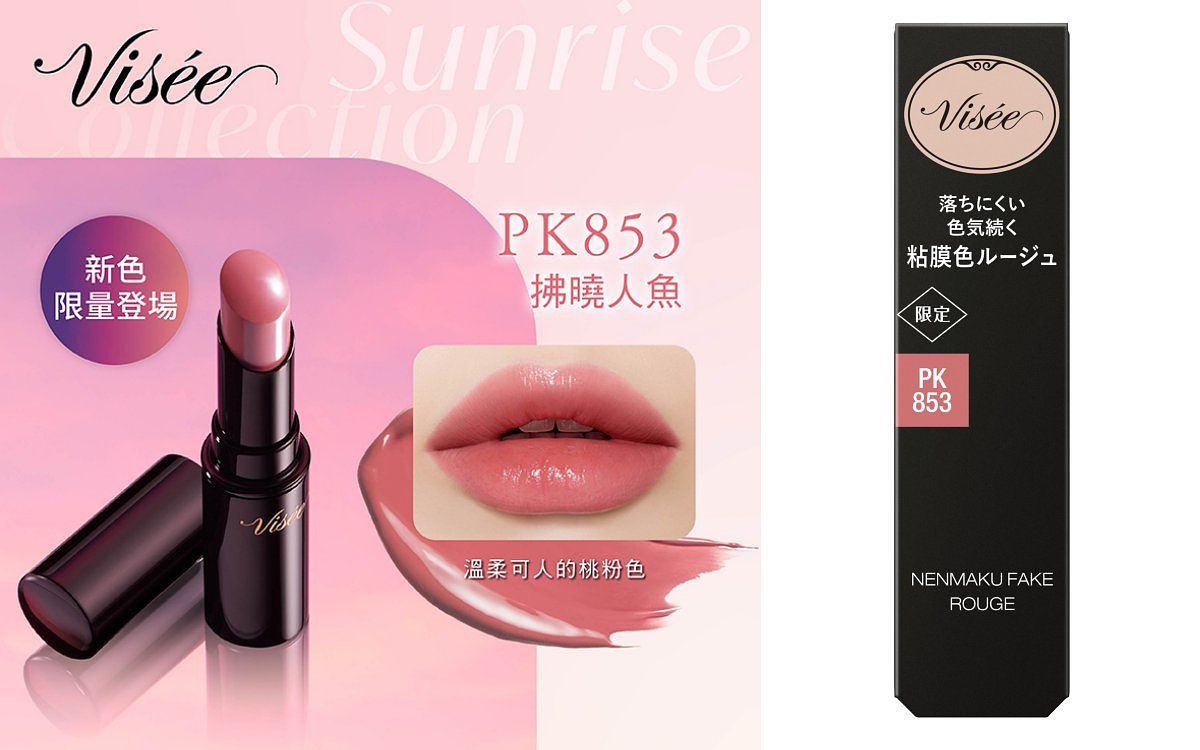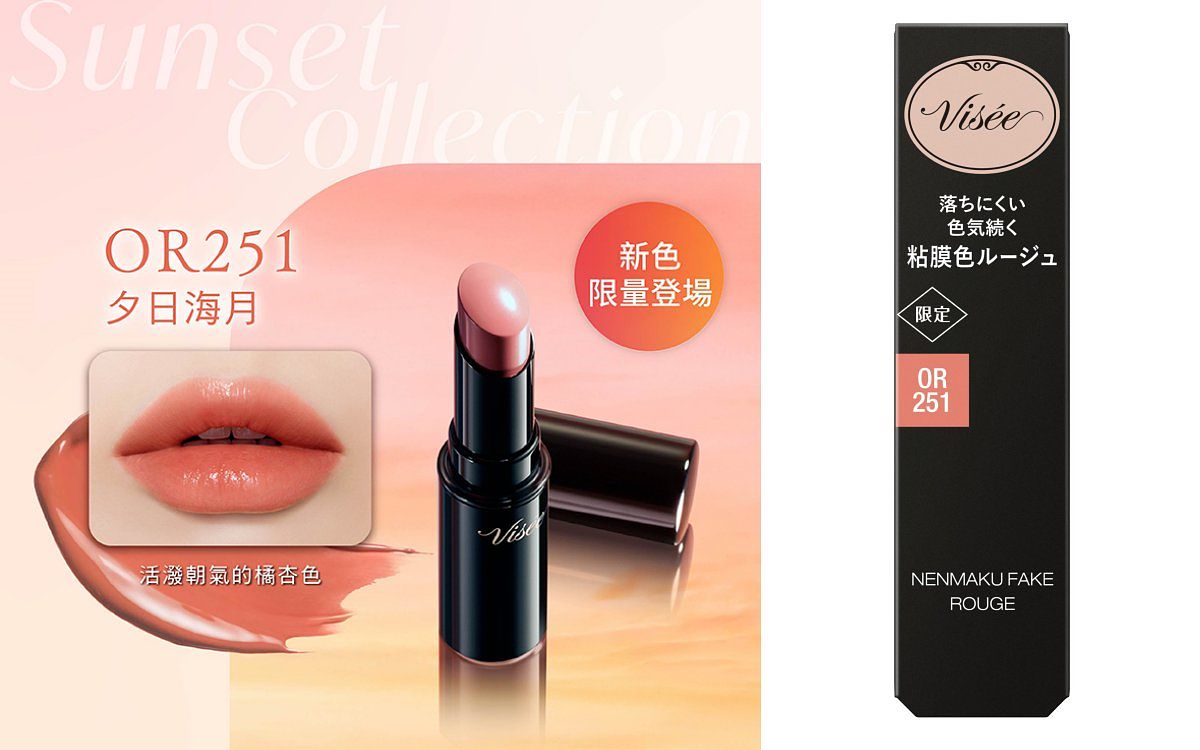 雙唇內部黏膜般的色彩及質地,一抹自然提升雙唇紅潤度,展現豐潤性感粧效的持色唇彩,限定推出適合夏季色彩的明亮新色,融入肌膚自然不突兀,增添華麗印象。