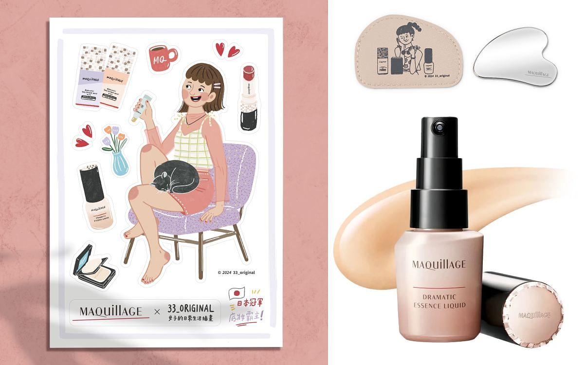 日系底妝霸主資生堂東京櫃旗下彩妝品牌「MAQuillAGE心機彩粧」,連年榮獲日本各大美妝媒體NO.1口碑認證,更是日系彩妝潮流指標。因應2024年即將迎來的520告白日, 「MAQuillAGE心機彩粧」領銜與新銳插畫家33跨界聯手,推出全台限定「MAQuillAGE X 33發光心機禮盒組」 , 邀請女孩們共同展現專屬自己的「心機」魅力。全新跨界聯名禮盒組透過33筆下的趣味繽紛線條,細膩描繪出女孩們在日常生活中所展現出的自然寫照,不經意的模樣最美!