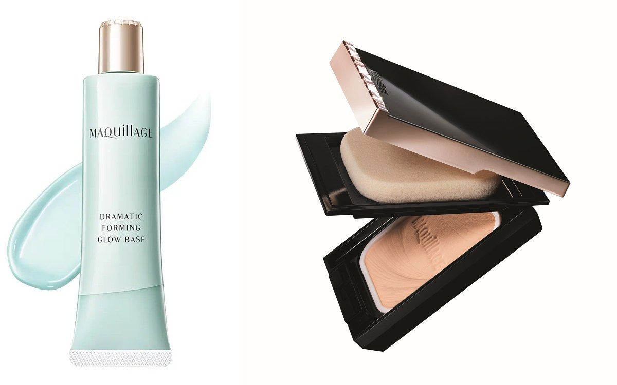 圖片來源:MAQuillAGE使用3D小顏光澤乳作為妝前打底,呈現極致澎亮視覺效果,並以星魅輕羽粉餅EX輕拍上妝,瞬間零毛孔、完美柔焦,若有似無的東京大人系裸妝即刻優雅展現!