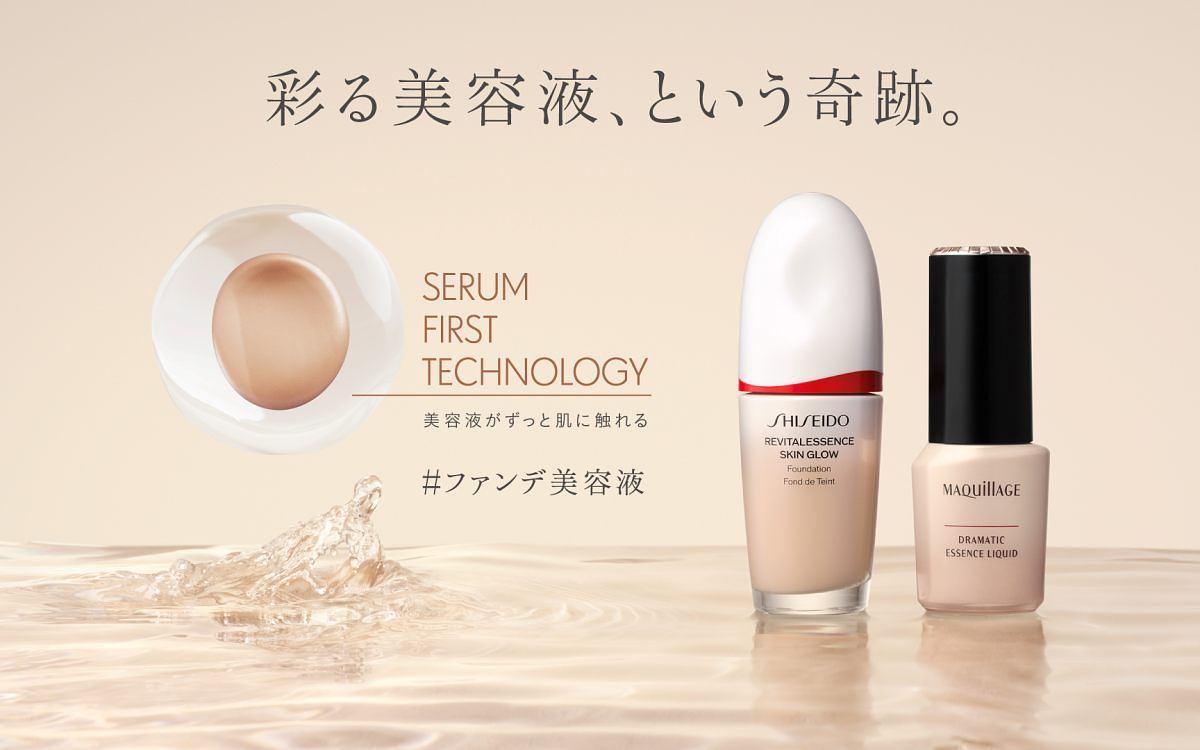 日本資生堂集團於2024年4月重磅揭曉日系完美底妝的核心符碼∶全新獨家「Serum First科技」先補水再控油核心概念,領銜注入於該集團旗下兩大日系領導品牌其明星粉底「資生堂國際櫃 #聚光燈粉底」及「MAQuillAGE心機彩粧 #牛奶粉底」中,採用高保濕精華包覆控油粉體革新技術,使質地快速滲透至肌膚深層達到補水功效之外,再透過控油粉體吸附多餘油脂,並均勻柔焦毛孔,呈現輕薄無負擔底妝亦無比服貼持妝。