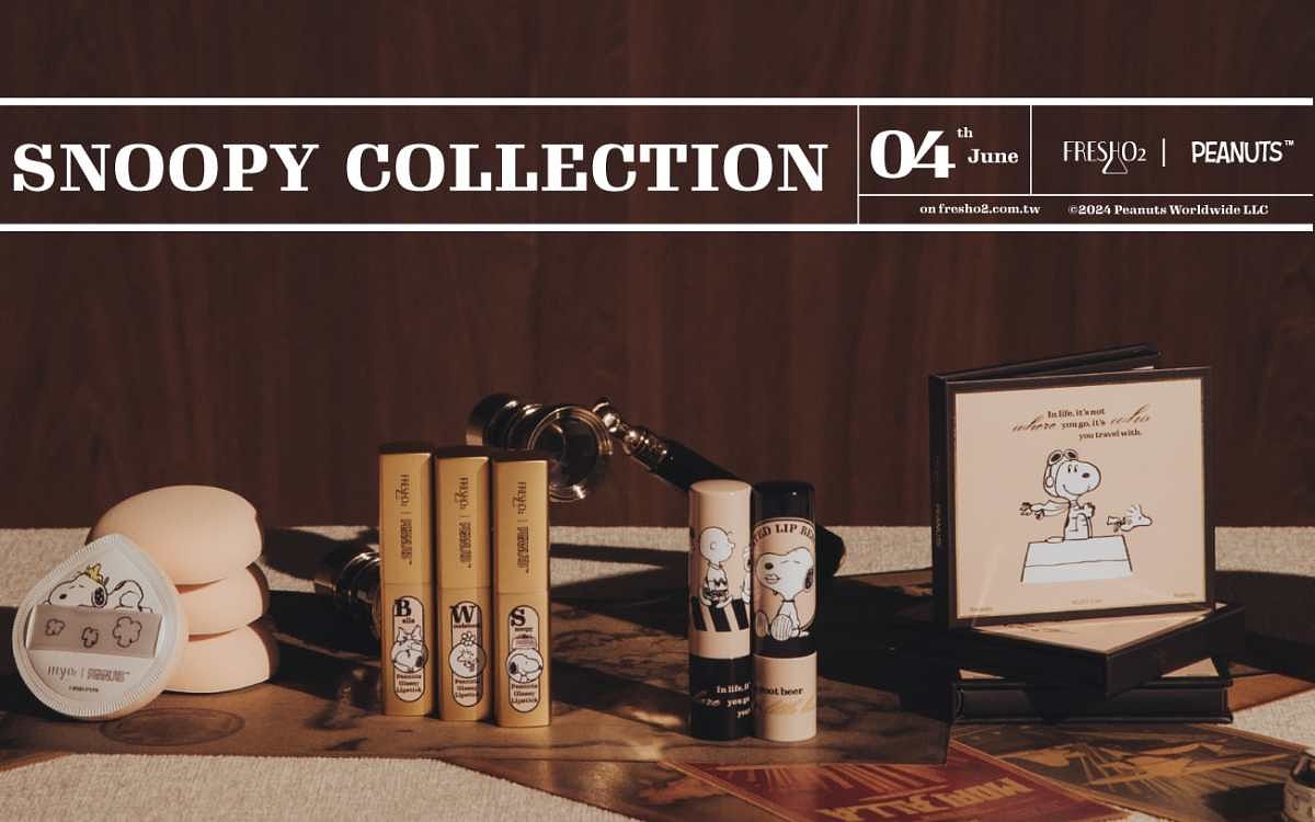 台灣彩妝FreshO2每年都帶來驚喜限定彩妝,被粉絲大力敲碗的萌狗狗來囉!FreshO2於2023年夏季結合美國經典漫畫《Peanuts》,將彩妝融入四格漫畫,彷彿成為日常篇章,造成一波瘋狂大搶購,真的是晚了就買不到。2024年持續延燒這股熱潮,再度打造第二波《SNOOPY史努比》彩妝系列聯名,以中性的復古奶茶色系作為視覺主軸,集結靈魂人物史努比、胡士托、查理布朗、露西等人氣角色,一次滿足花生米家族收藏家,同時也驚喜加入成員歐拉夫以及貝兒,充滿著美式風格的單品,頭戴飛行員頭盔和護目鏡,頸間的圍巾隨風飄揚,向漫畫中的經典角色-王牌飛行員致敬,讓漫畫角色呈現出不同以往的嶄新面貌,實現史努比的飛行大夢,為大家揭開一場彩妝的奇幻之旅。