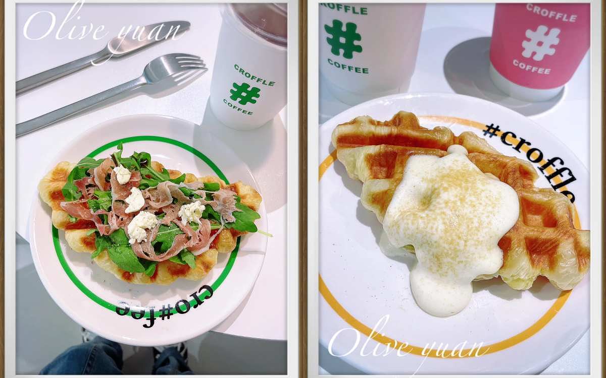 圖片來源:觀玲老師好的!那將可頌壓扁成鬆餅的點心叫「可朗芙Croffle」,我選的是鋪上滿滿芝麻葉、起司及生火腿的鹹口味,超好吃的啦!但大家都點楓糖奶油口味!