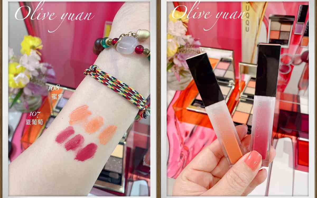 圖片來源:觀玲老師Andy老師再用S01果蜜唇頰膏於雙唇,接著再疊擦「晶采極潤唇釉 NT1,500」的108蜜焦(乳白橙橘色),有夠漂亮,但我選了107夏葡萄,想說我比較少藍感粉紅葡萄色唇彩。對了!唇頰膏我選了很可愛的S02莓飴。
