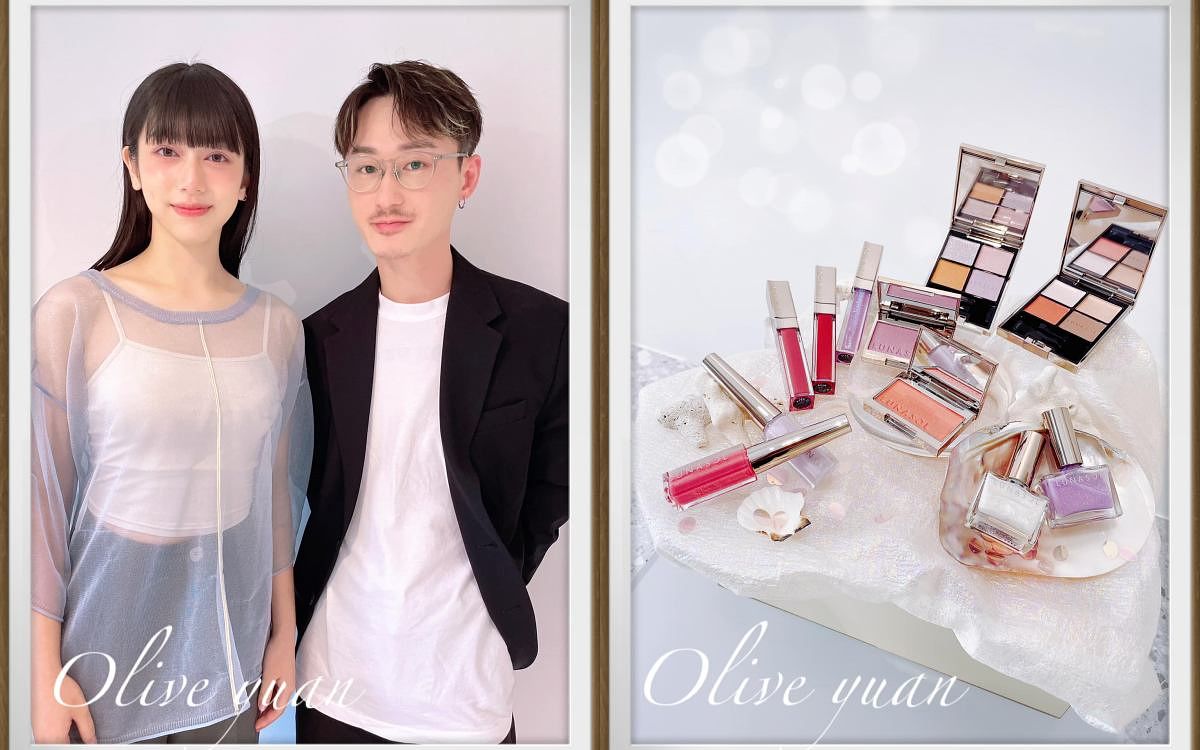 提高防曬系數並降低潤澤度,所以更適合夏天。塗抹後還會型成特殊“耐汗、耐皮脂”親膚膜,所以不用蜜粉定妝也OK!因為我不上妝,所以下睫毛膏都會暈開,用一點於眼周超防暈。東井老師先用OC02色然色幫model打底,再用OC01明亮色疊擦於顴骨打亮,會以用打亮粉更加自然立體。夏天部分照慣例有2個組合,以海灘光色、及陽光映照在沙灘上產生的碎鑽光芒為靈感,推出「Shell Iridescence(珠貝虹)」及「Mellow Sunset(暖暮醺)」2大系列,系列中有眼影、眼線、修容、唇釉及指甲油。