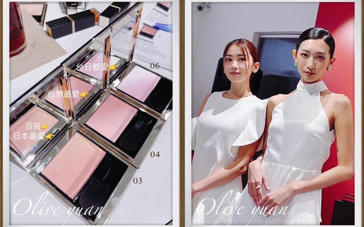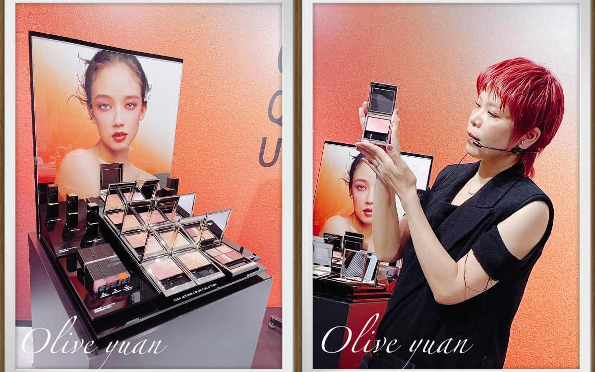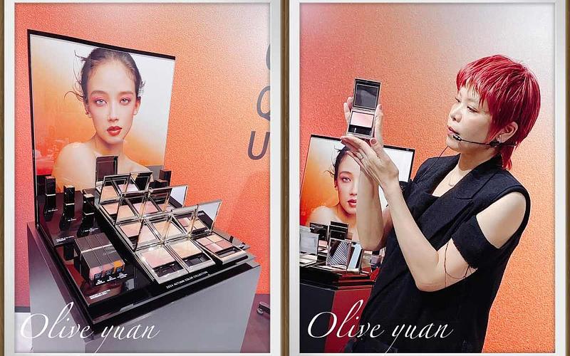 圖片來源:觀玲老師柔滑微細的粉體採「Qil-less-無油」處方,所以刷起來更平滑更自然,有的是「腮紅&打亮」漸層色,有的是「雙色頰彩」漸層色,而且2色採對角線漸層配置,說這樣粉末可混合得更均勻。SUQQU大林老師也特別來到台灣親自示範。