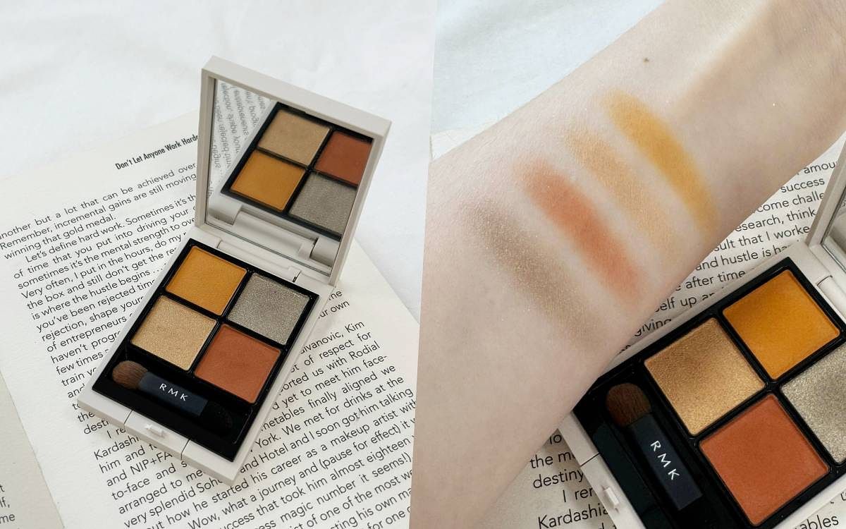 RMK今年秋妝特別以美國亞利桑那州一望無際曠野大地為靈感,將大地的強大力量注入在霧光色彩中,夕陽和雲母的輝亮光燦賦予在大顆粒的珠光上,並將質感對比的交織、釋放壓倒性的能量妝點於雙眸。而立體調色眼盤限定新發售的2款中「#EX-08 Sedona Sunset」以「暴風雨過後,夕陽的輝亮光芒反射在紅土融化的褐色水面上」爲意境的自然氛圍眼盤。霧光的暖色調搭配高亮燦的冷色調珠光、以對比極其鮮明的層次感,輕鬆就能畫出暖黃大地色眼妝,色彩上更加多彩亮眼卻又不過度搶眼。