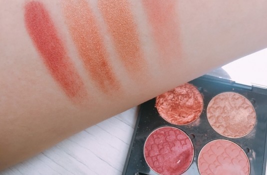 其實這一塊是去年在韓國購入的,當初布達佩斯眼影一推出就造成了小小轟動,因為售價便宜,加上顏色都、超、美!所以不少女生都擁有這一顆眼影,我使用的PK015是偏桃的珊瑚粉色,非常適合現在春季的甜美氛圍,粉很細緻,同時帶一點微微的亮面感,通常我會直接用指腹塗抹上去,顏色會比較飽和顯色。