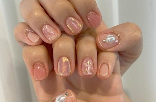 柔和的豆紅色讓雙手流露優雅氣質;帶點褐棕調的紅豆色也極美,加上白色薄霧暈染,一秒成為百看不膩的仙女指彩色!