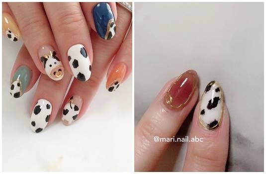 2021正式進入牛年,可愛的乳牛光療圖案正在崛起!不同於以往流行的豹紋圖樣,乳牛圖案多了一點翻玩的可愛感!黑白基本色搭配其他單色指彩,怎麼看都無違和~