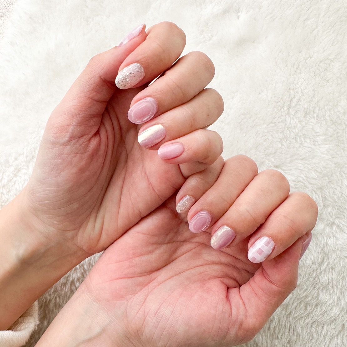 我偏好裸色與粉色系的指彩底色,視覺上能讓手指變得更優雅修長,抹上亮粉營造出虹光與珠光,或是使用凝膠做出立體度等等,讓粉裸色系也能增添一絲活潑感!..... (生活企劃主編 Enid)
