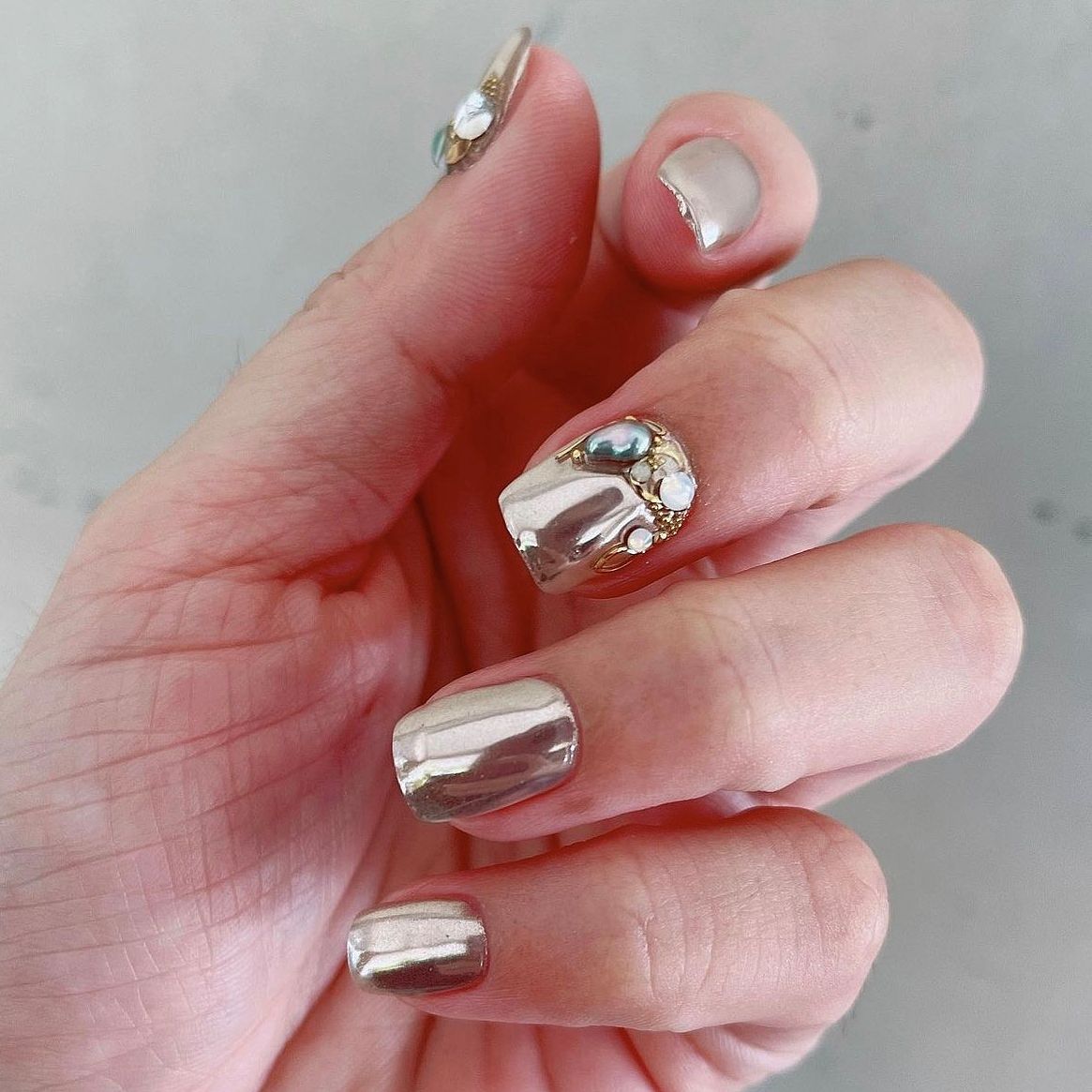 近期我非常喜歡關注鏡面或單色貓眼光療,不需要特殊繁雜的綴飾,僅單色就能因光線變化產生不同效果,怎麼看都看不膩,而之前有看到金色鏡面真的很驚豔,再搭配戒指就超時髦超搶眼,也可以簡單單色再用鏡面作線條點綴也很美!另外珍珠貝殼光澤或極光,也是最近讓我很想嘗試的風格!乍看之下不搶眼,一但注意到就超吸睛,眼神都離不開!..... (資深網路行銷企劃組長Amanda)