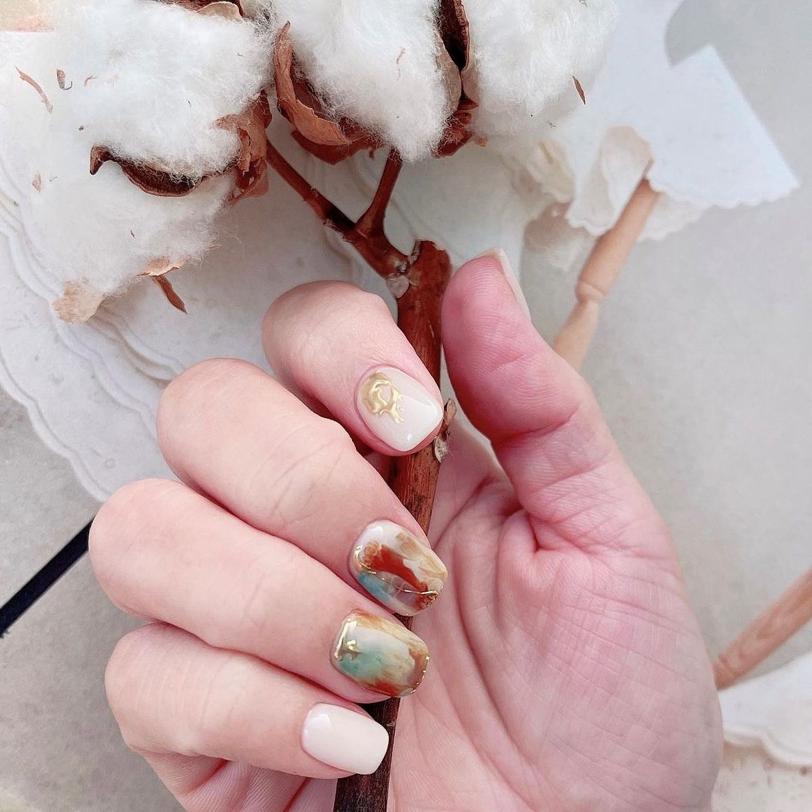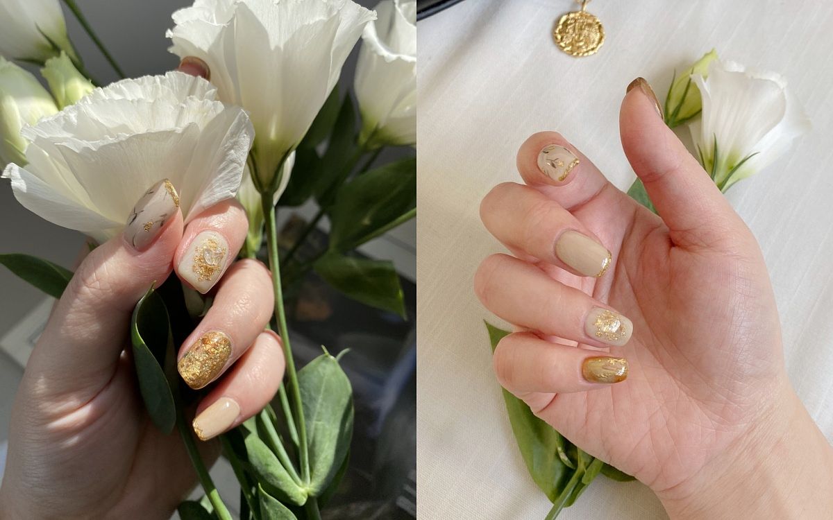 因為每個月都有做美甲的習慣,平常都會在IG上追蹤許多日本美甲師,特別喜歡日系帶點復古典雅、微奢華質感的美甲風格,通常我都會選擇以大地色系為主,不只十分襯膚色顯白、日常也好搭配服裝及飾品配戴,最喜歡在造型上以金箔、金屬膠來添加,搭配暈染、寶石或立體造型等等,且雙手十指我會挑選三至四種造型混搭,讓整體的層次感與豐富性提升,金色跟米杏、大地色搭配起來真的超級美!..... (服裝企劃主編Ainsley)