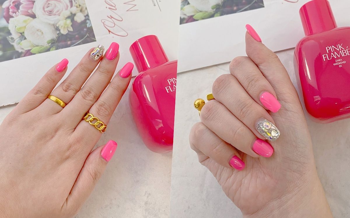 今年最火的顏色「死亡芭比粉」如果擔心穿在身上駕馭不了!那就盡情的彩繪在指尖吧~高飽和度加上明亮的粉紅色彩,再搭配跳色單指貼鑽,讓整雙手都活潑可愛了起來!還更顯白皙膚色,就算沒打扮或身穿素色衣服,只要舞動手指,瞬間就覺得:嗯~我手真美,我是Pink lady!..... (數位專案企劃主編Vanessa)