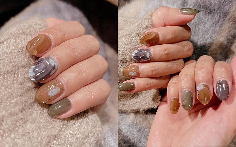 花色暈染用裸色來跳色搭配更顯氣質感,暈染色以秋冬色調為主,如果想要再多一點華麗氛圍,可以用金線、金箔感做點綴,這樣的設計雙手也格外的顯白喔!..... (影音總編輯Yulie)