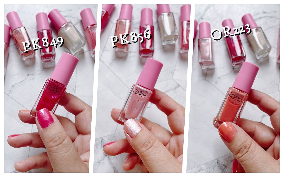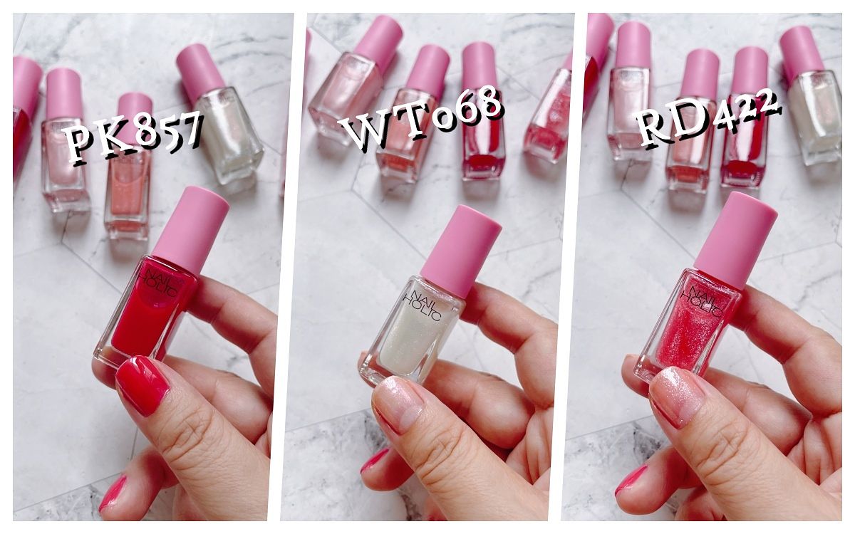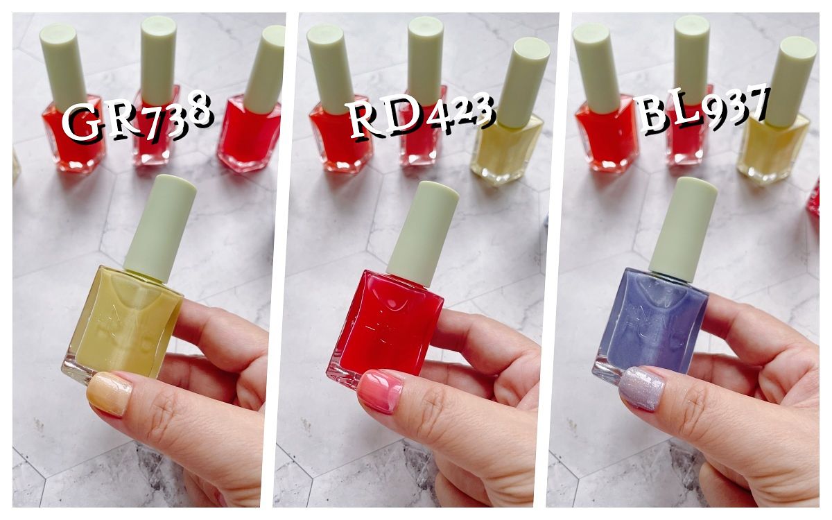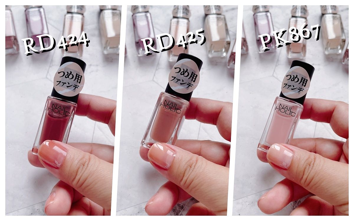 RD424~PK867這3款為暖色調,有一種血色感,就像剛洗完澡、血液循環很好的狀態下,指尖都會紅潤紅潤的,就像那樣的感覺,這3瓶也好美!「裸粧飾甲油」每一瓶都很顯白!大推!