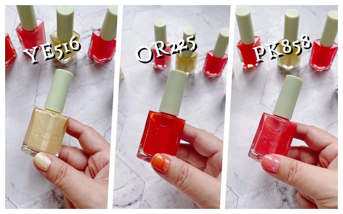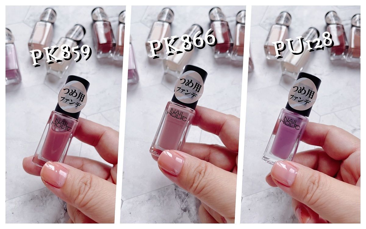 跟粉底液一樣,也有分冷色調及暖色調,先從PK859~PU128這3瓶冷色調開始,質感用起來非常果凍感,因為它能一抹能形成厚膜質地,感覺也很像光療,加上這樣的裸色,塗抹後會覺得“指尖有種乾淨感”!